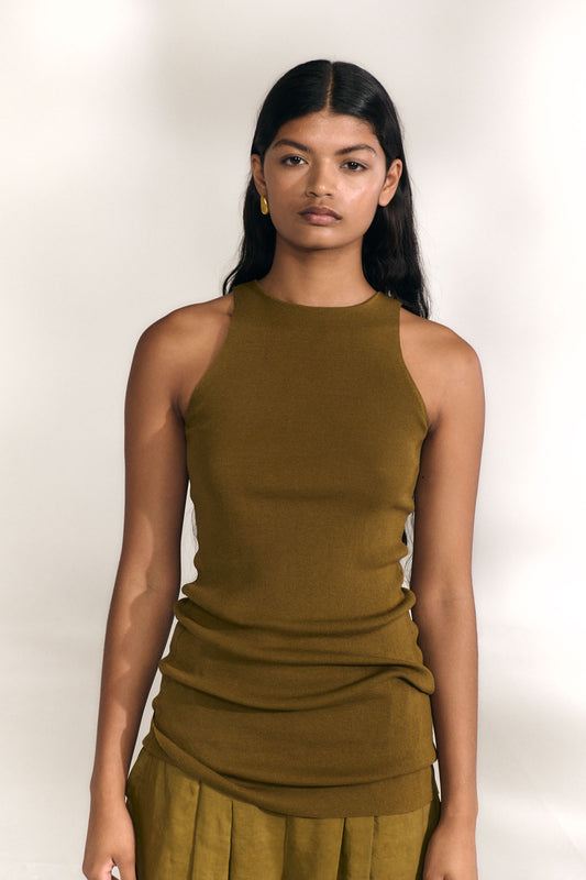 34 36 38 40 42 44 Anele, top de punto de seda y algodon kaki claro *El resto de tallas están agotadas.