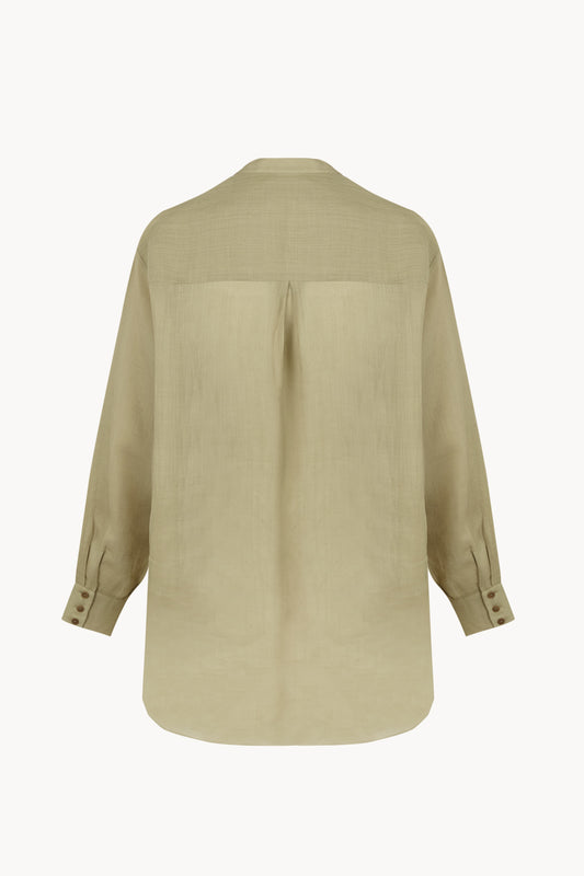 34 36 38 40 42 44 Simona, chaqueta envolvente de lino y seda kaki claro *El resto de tallas están agotadas.