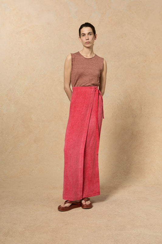 Long, fitted top in silk and cotton jersey. The Alaska top has a square neckline in the front and a round neckline in the back.