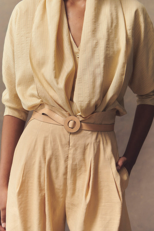 Lignt linen sweater with a V-neckline at the front and back and a central seam. Made from high-quality linen knit and crafted in Italy in ateliers that maintain an artisanal approach. Linen cultivation requires less water and resources than cotton and does not need pesticides or chemicals. It uses land space efficiently, being one of the most productive crops per hectare. Additionally, linen is biodegradable and durable, minimizing its environmental impact and waste generation.