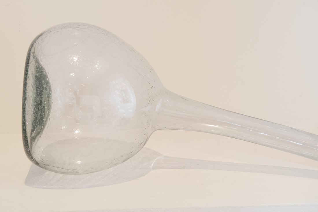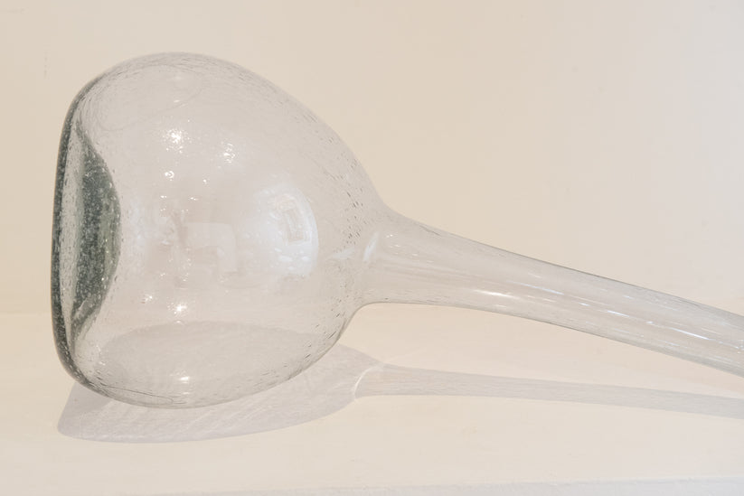 Blown glass jar, made from recycled glass. This process facilitates the formation of bubbles inside, and these irregularities give each piece a unique appearance.