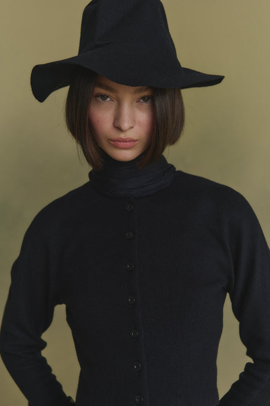 Pants made from a fabric that combines wool and cashmere, featuring pleats and side pockets. Front closure with an invisible zipper.