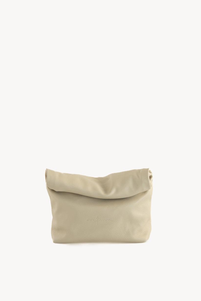 Delhi S, ecru leather clutch