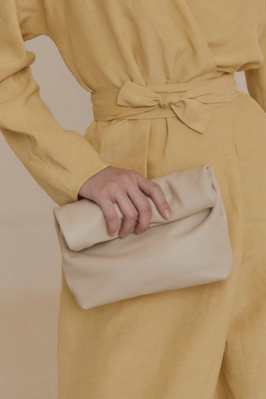 Delhi clutch, expertly crafted in Spain from extra soft nappa leather. The Delhi bag closes with an invisible internal magnet and has an embossed front logo detail.
