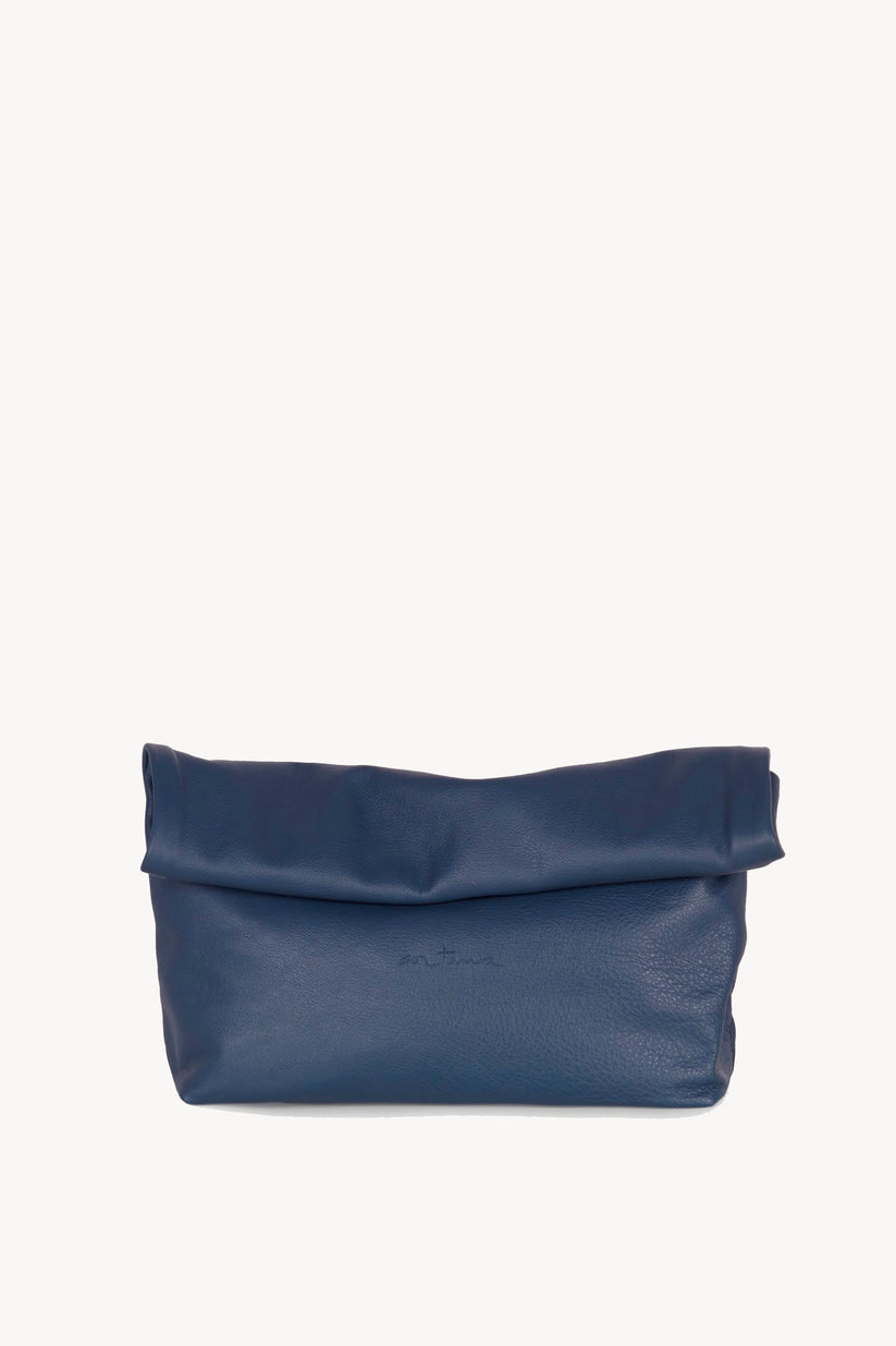 Delhi L, large navy leather clutch