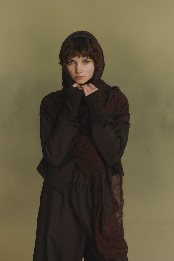 Triple-color gradient scarf, made in Italy from a yarn that combines cashmere and silk.