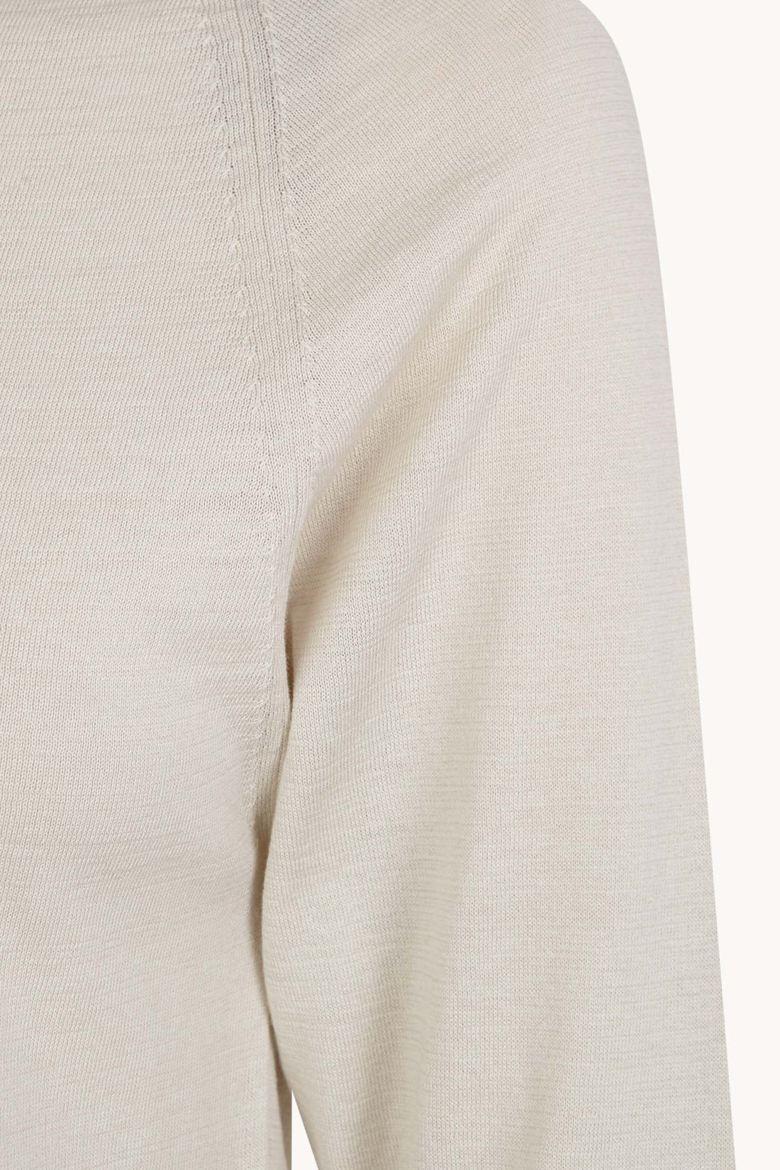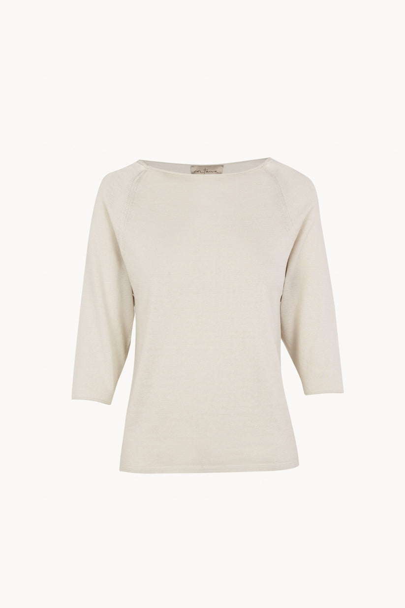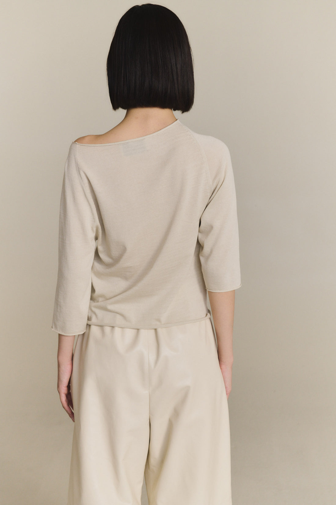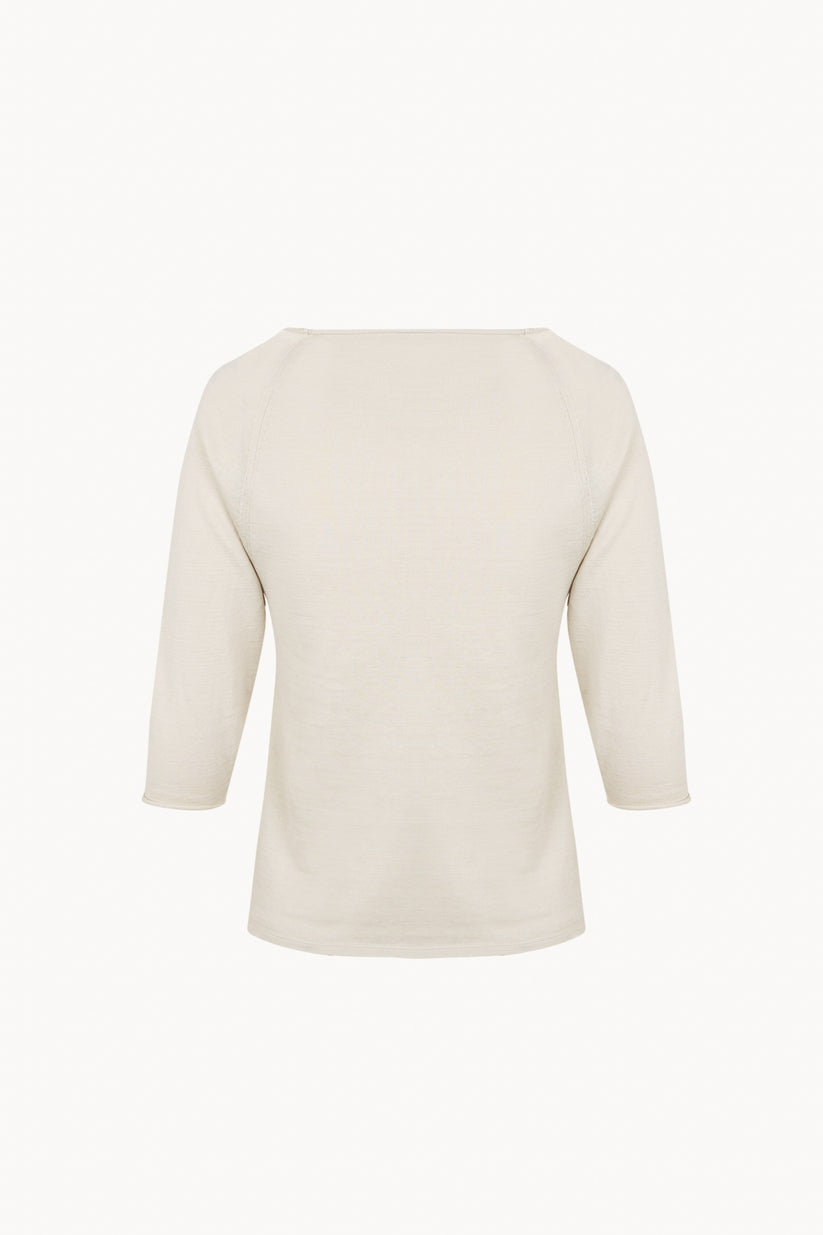 Fitted sweater crafted from a stretch silk–cotton knit, featuring three-quarter sleeves and a rounded neckline.