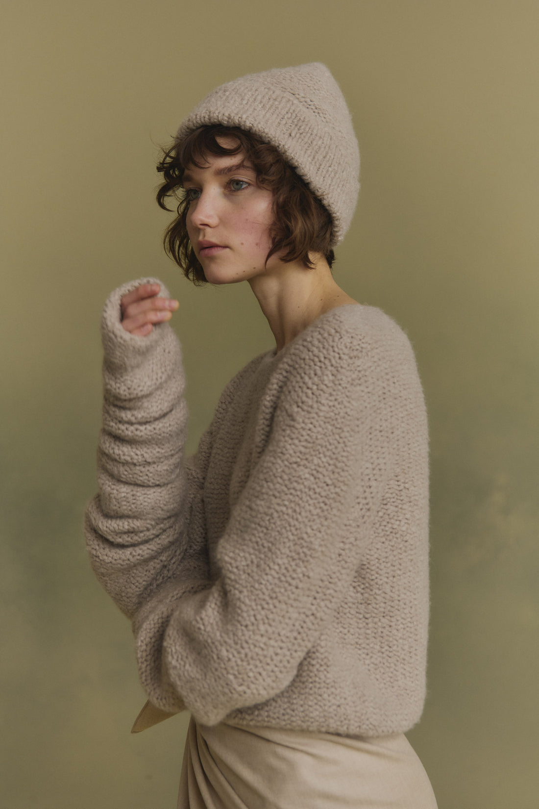 Igloo, beige cashmere and silk beanie