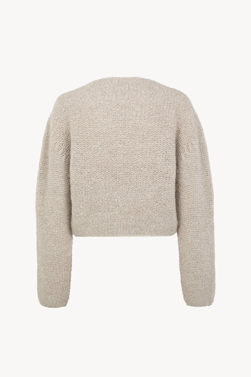 Short beanie made in cashmere and silk yarn with turned-up hem.