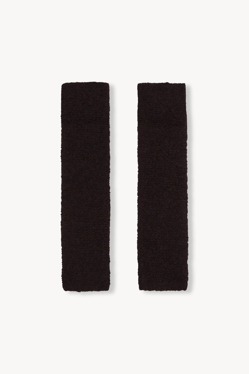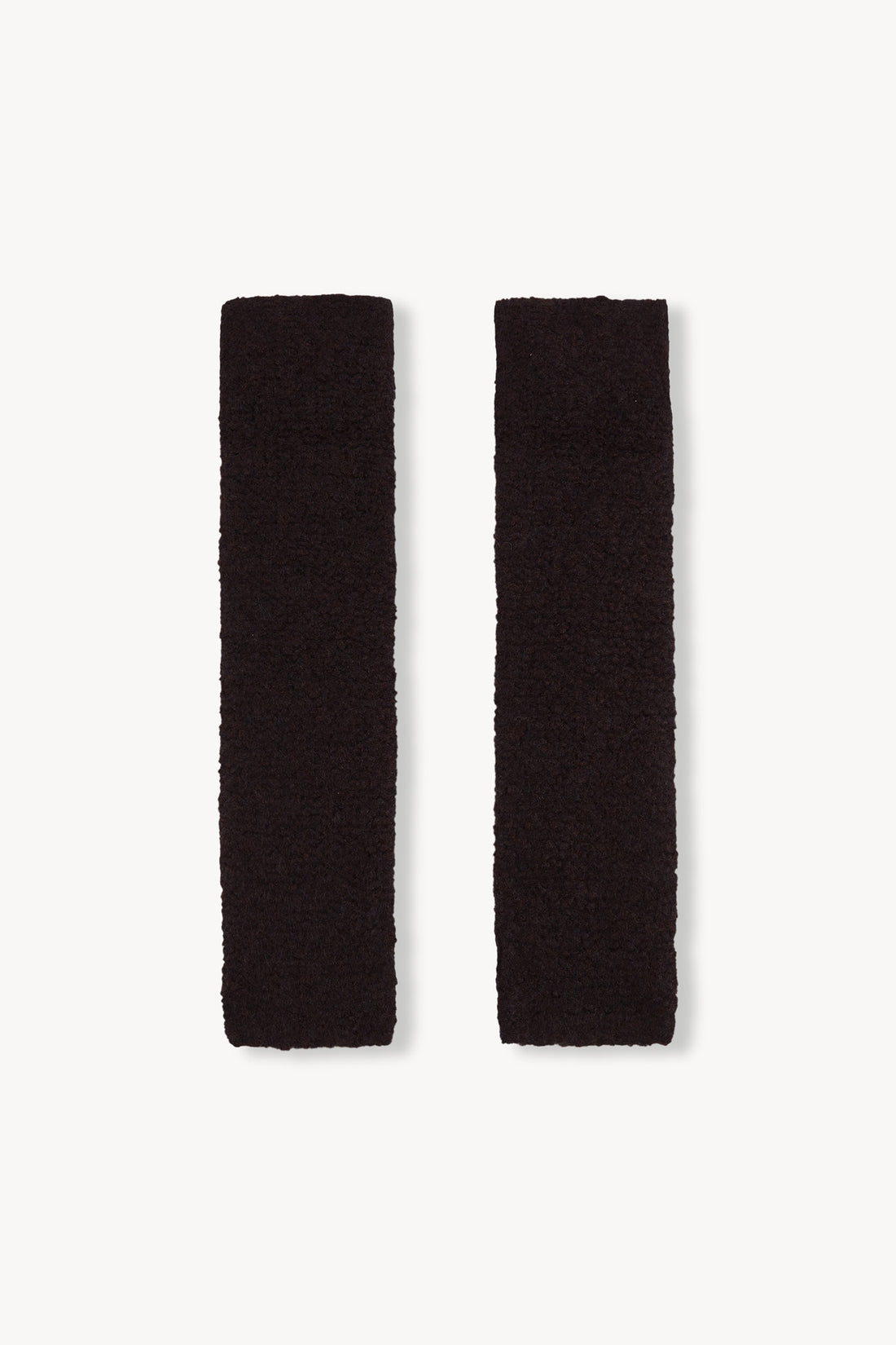 Long knitted sleeves with thumbholes made with a yarn that combines cashmere and silk.