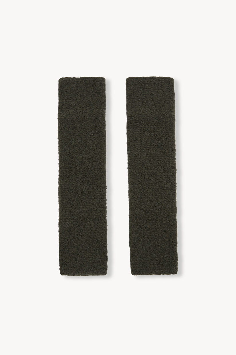 Long knitted sleeves with thumbholes made with a yarn that combines cashmere and silk.