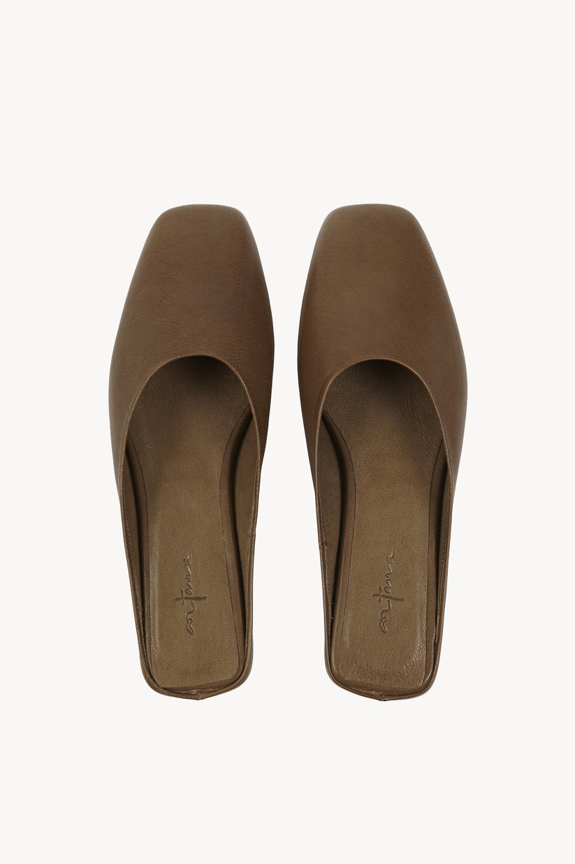 Jackie, mule in khaki green leather