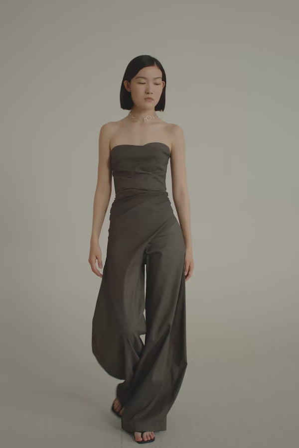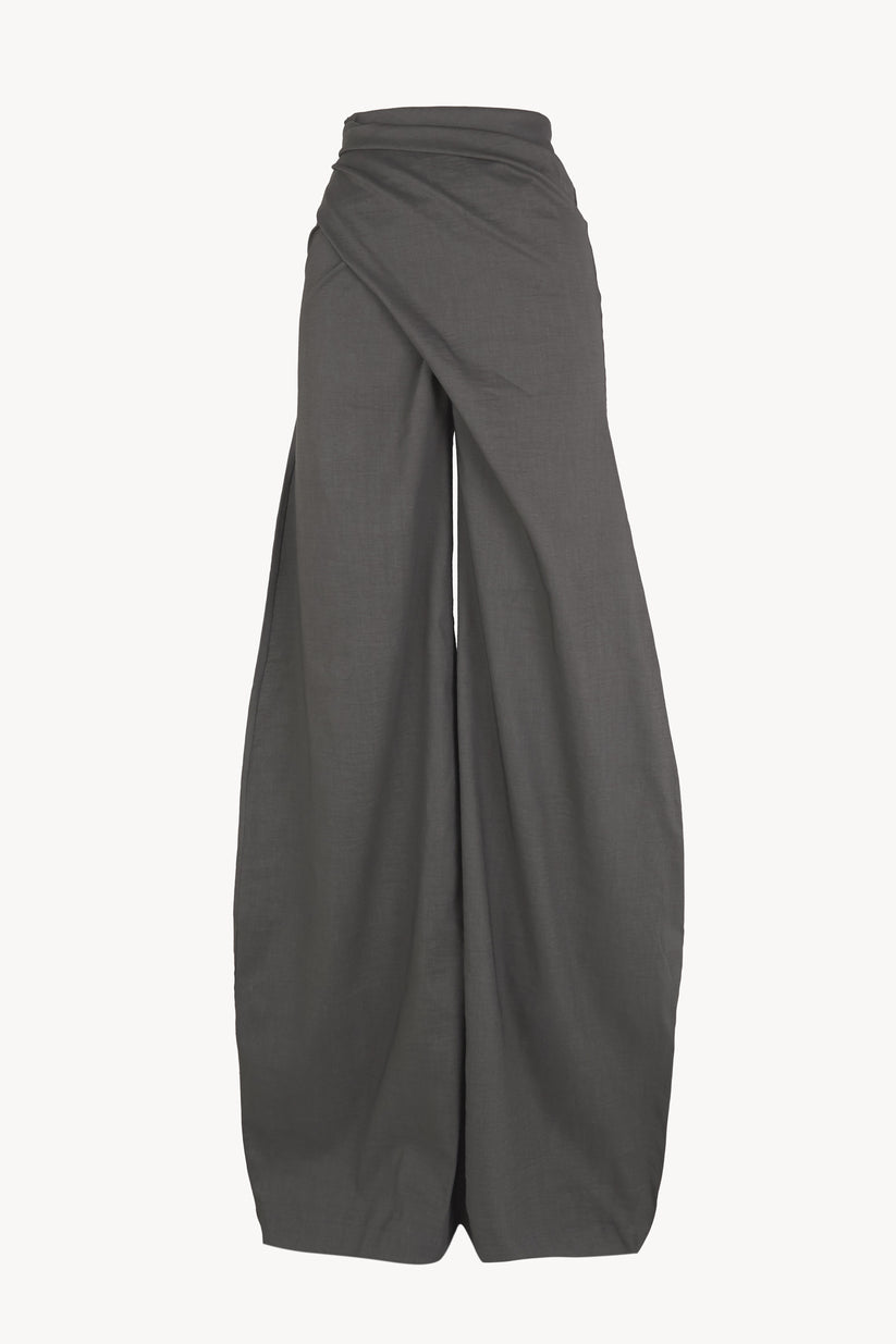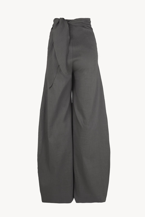 High-waisted wrap trousers featuring a front crossover design secured with a matching fabric tie at the waist. Crafted from a stretch fabric blending hemp and viscose, the Mite trousers draw inspiration from traditional Thai fisherman trousers.