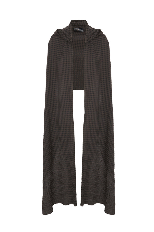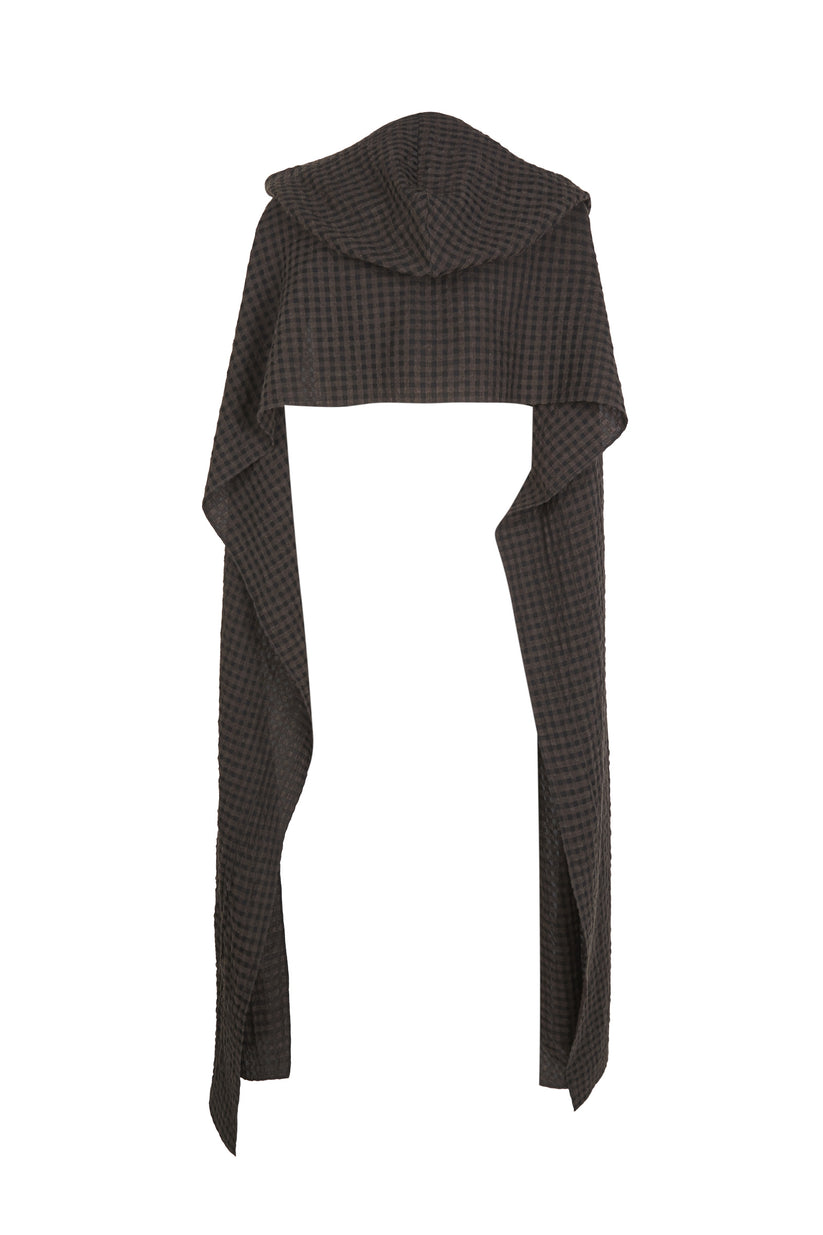 Hooded scarf made in a wool and viscose blend fabric with checkered jacquard
