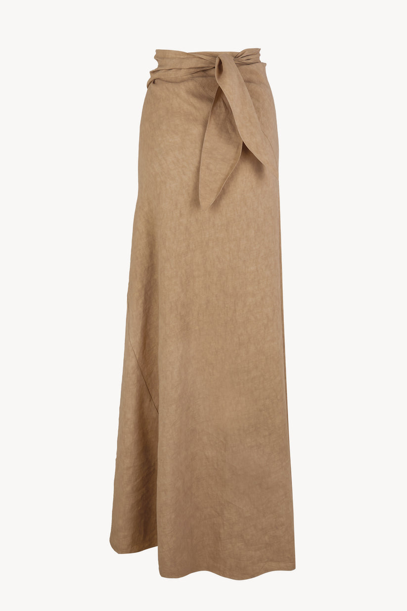 Long bias-cut skirt crafted from a blend of linen and cupro. The Odel skirt features integrated ties that fasten at the waist, providing a comfortable and versatile fit.