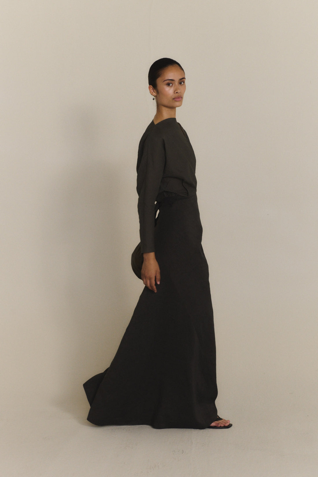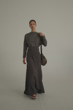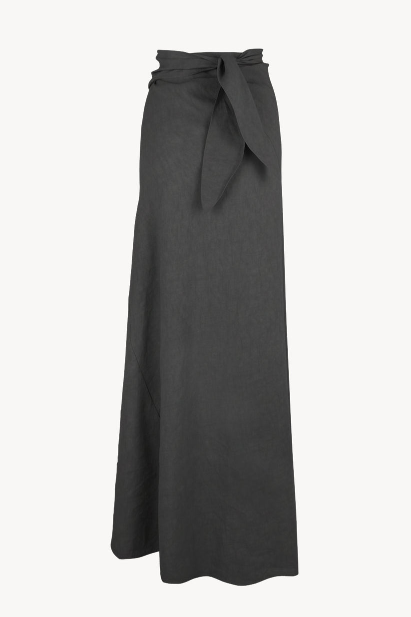 Long bias-cut skirt crafted from a blend of linen and cupro. The Odel skirt features integrated ties that fasten at the waist, providing a comfortable and versatile fit.