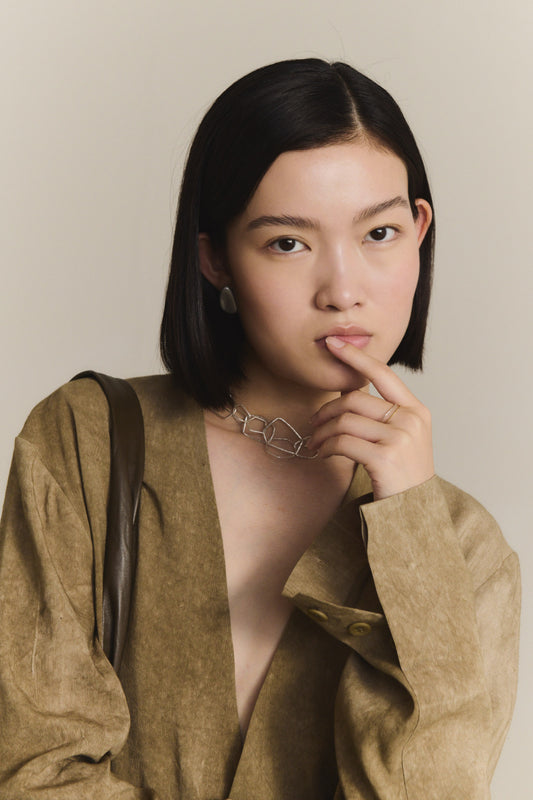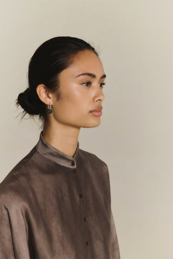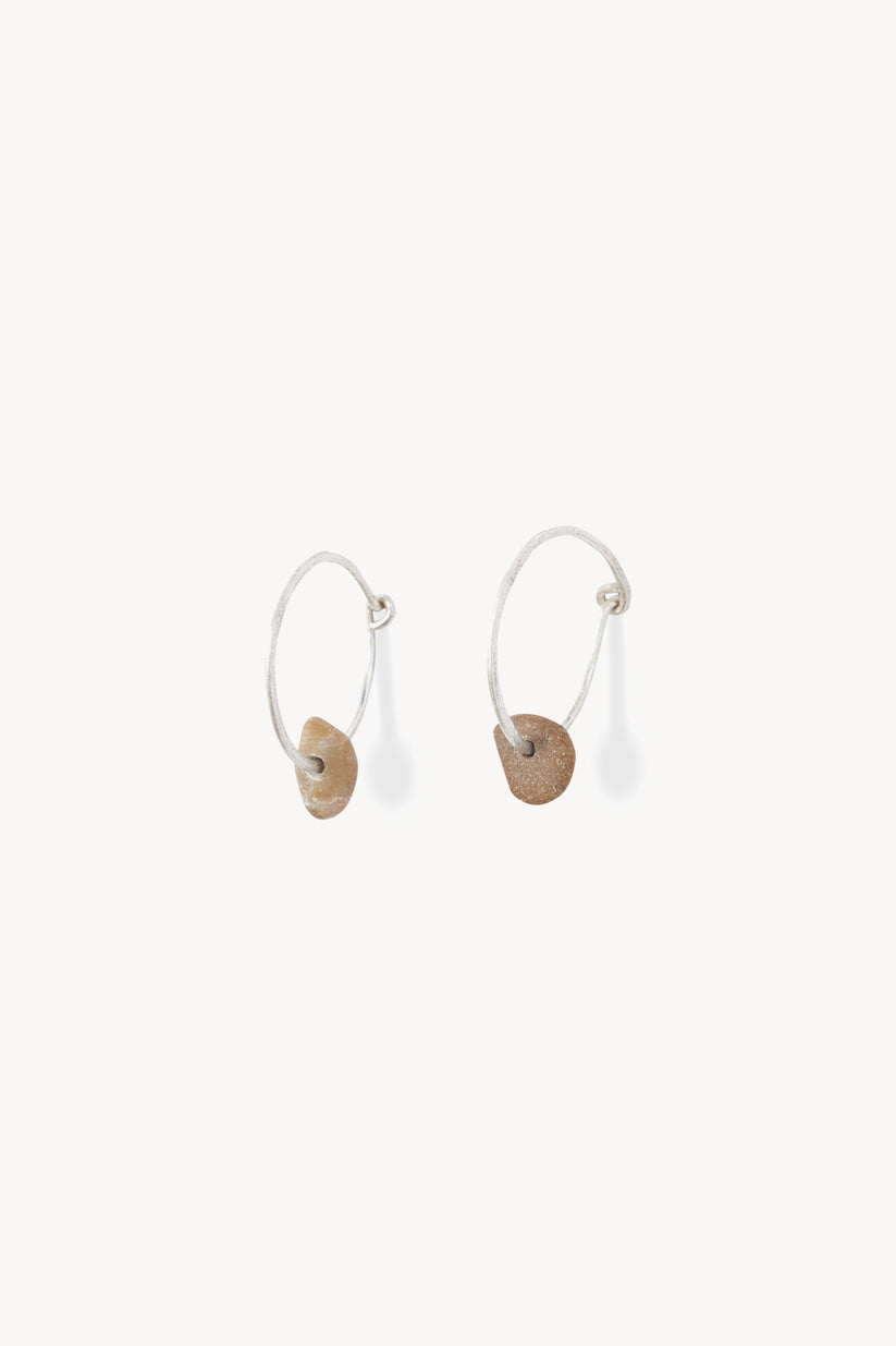 The Petra earrings, crafted in sterling silver, feature a removable beach pebble detail. Designed by Cortana’s creative director and produced in artisan workshops in Mallorca, they are part of a coordinated set also available with the Petra ring.
