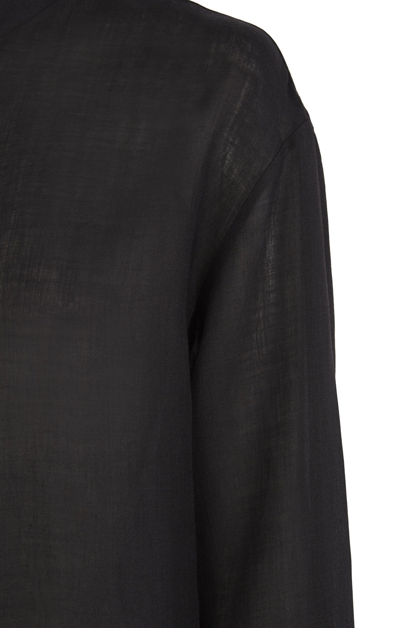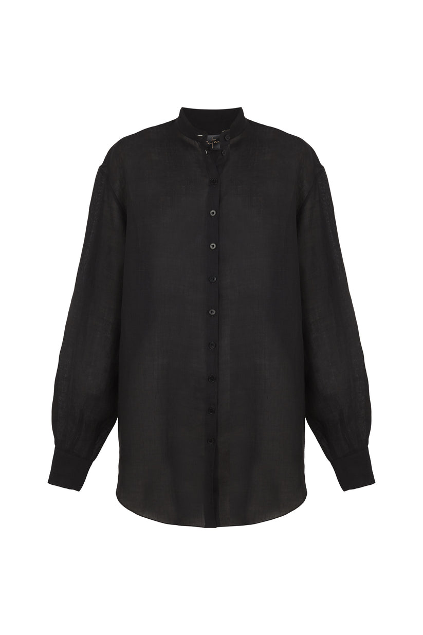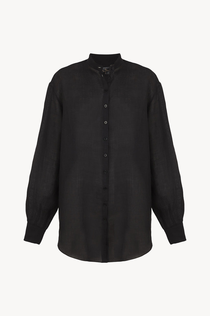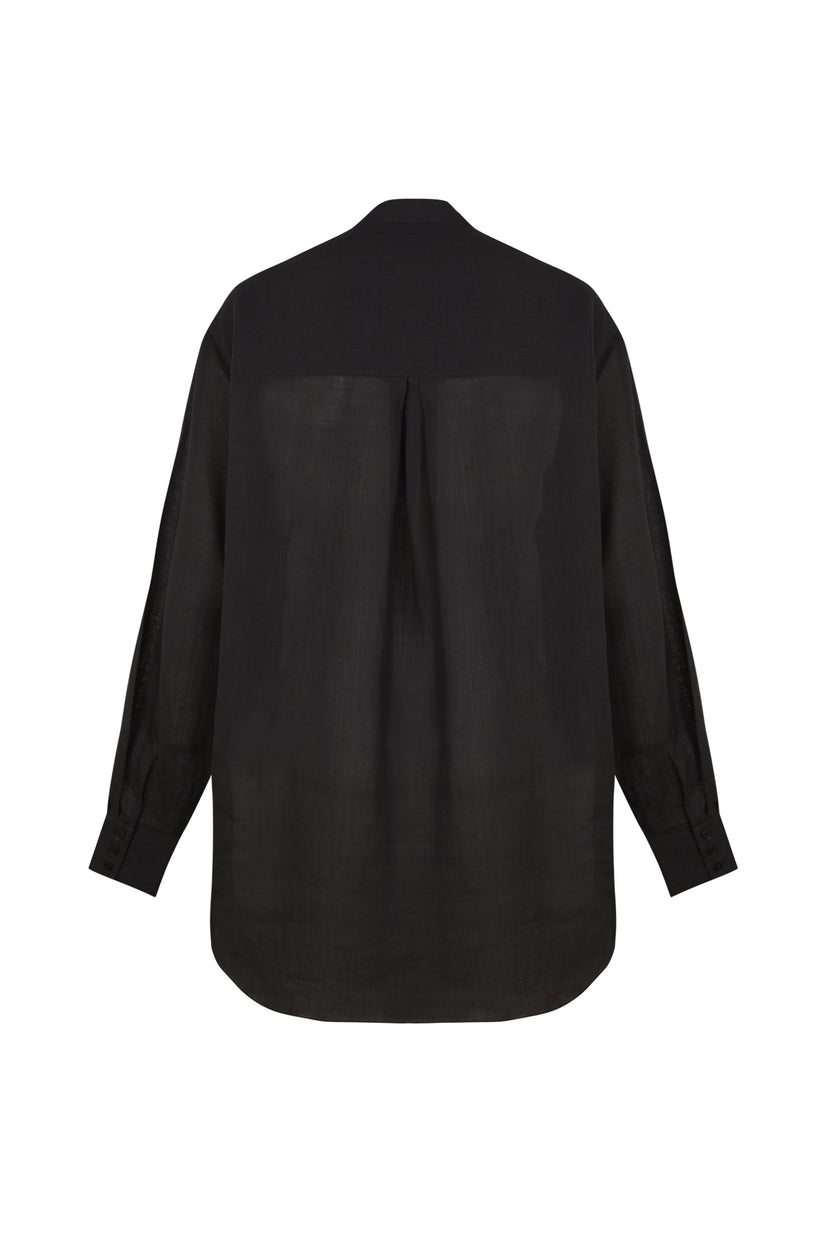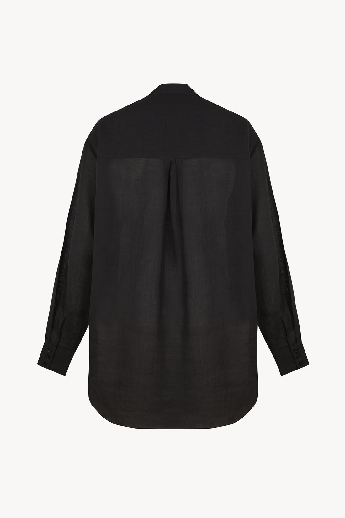 Unisex oversized masculine-style shirt made in ramie. Features back yoke and corozo button fastening.