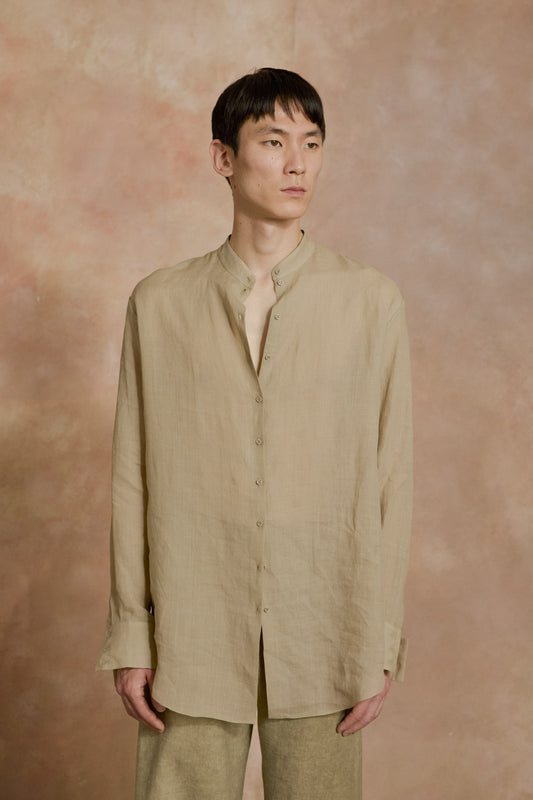 Unisex shirt in cotton and silk voile with a loose fit and hidden buttons.