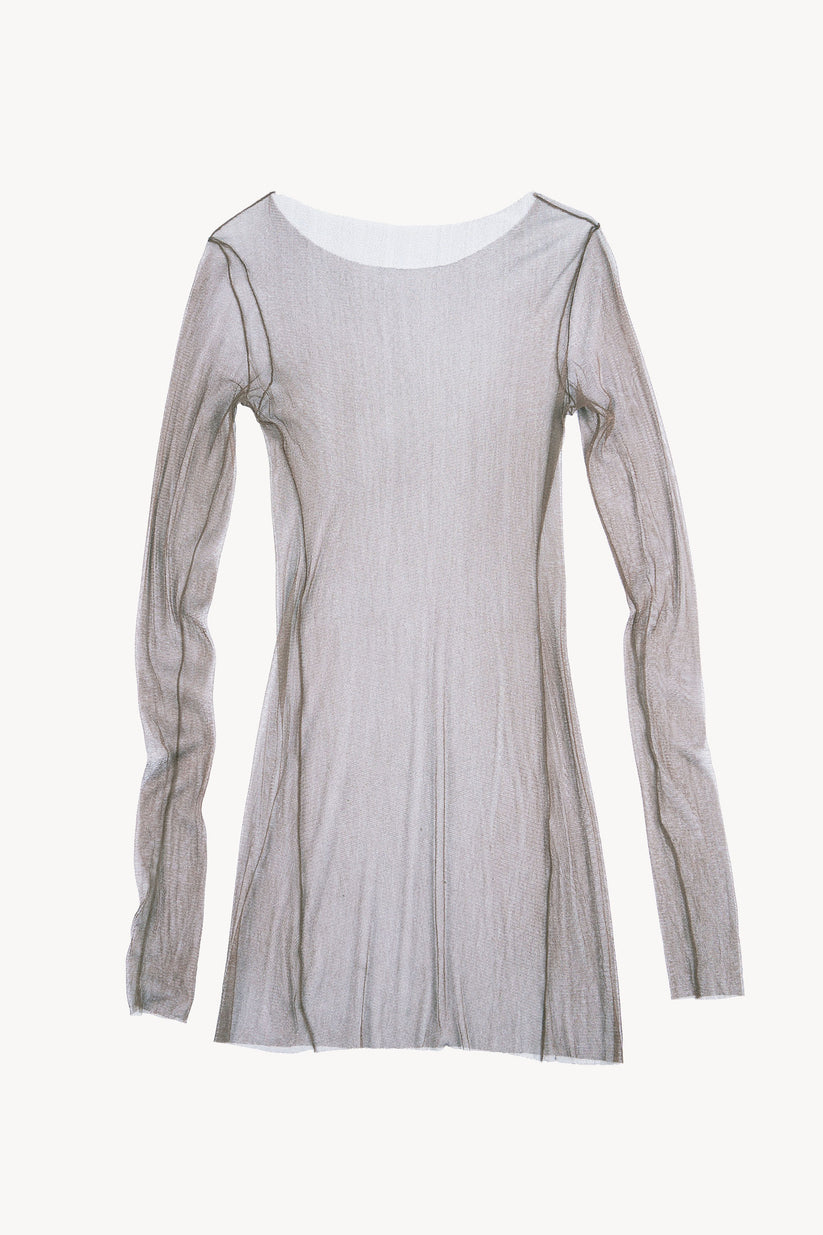 Sheer natural silk tulle top, a versatile and adaptable garment with a bateau neckline, long sleeves and that adapts to the body. Perfect to accompany sleeveless dresses or to let it peek out under any garment. Part of Cortana's Silk Tulle collection which each season offers different colors.