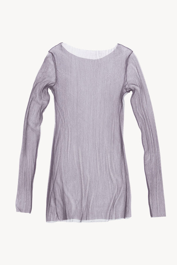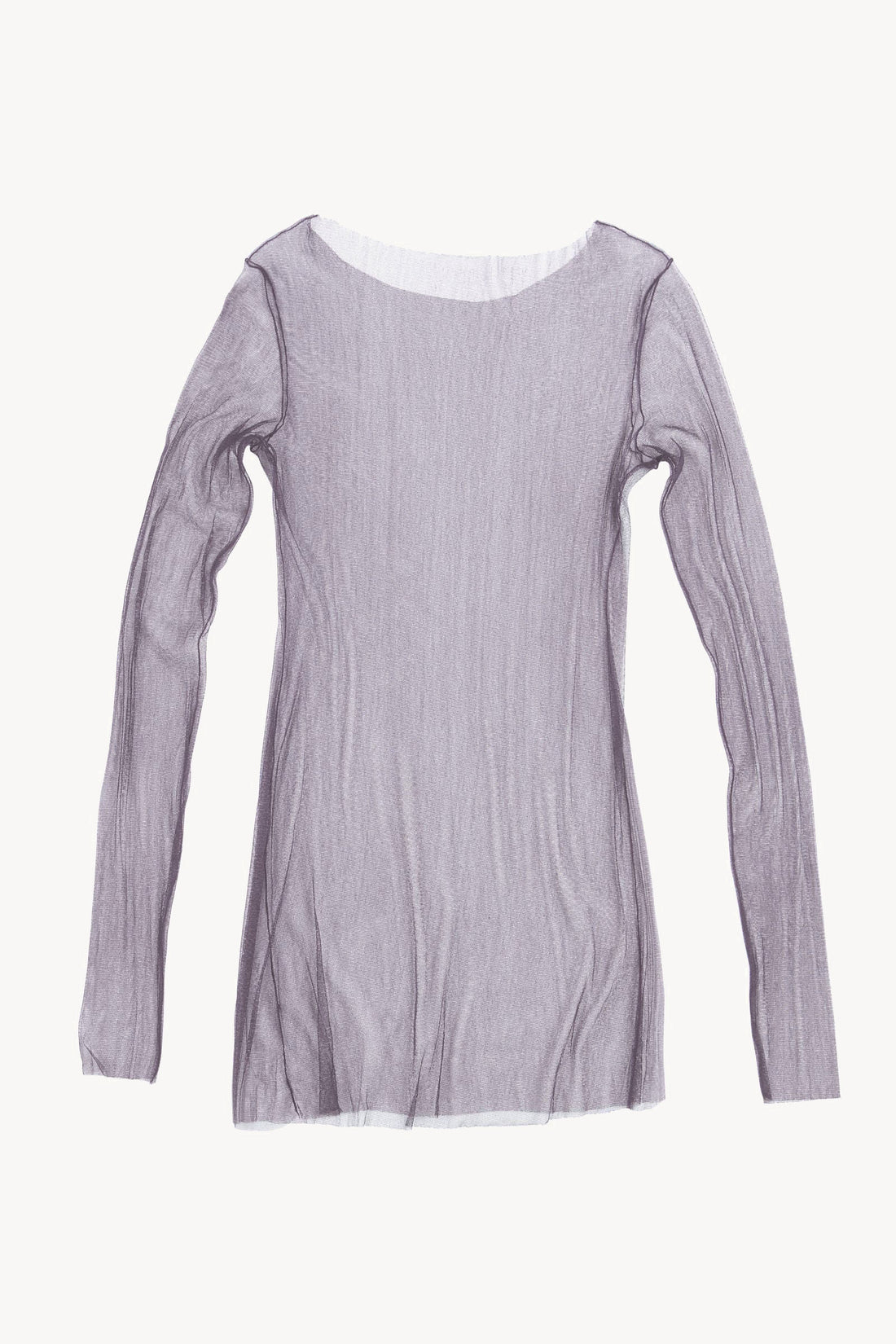 T de Tul, a classic Cortana top made of natural silk tulle, features a bateau neckline, long sleeves, and a form-fitting silhouette. Perfect for layering under any garment. Available in a new color selection each season.