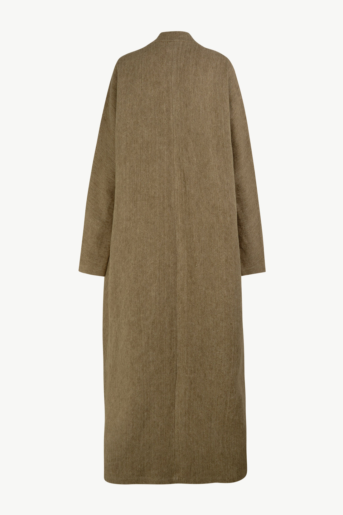 Long coat crafted from thick linen jacquard, featuring a kimono collar, dolman sleeves, and practical side pockets. Designed for effortless elegance, the Tourmaline coat pairs seamlessly with the Tourmaline trousers for a coordinated look.