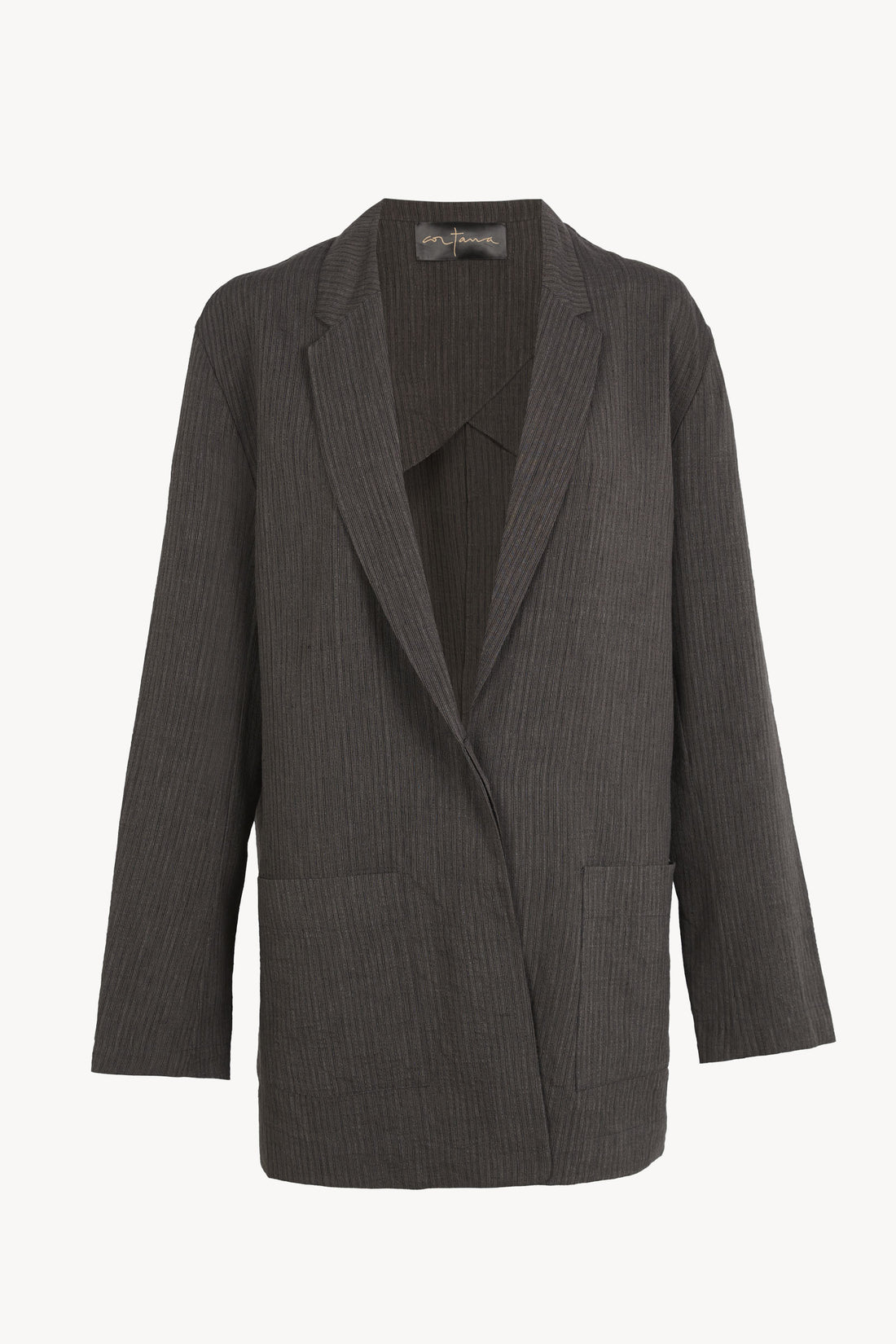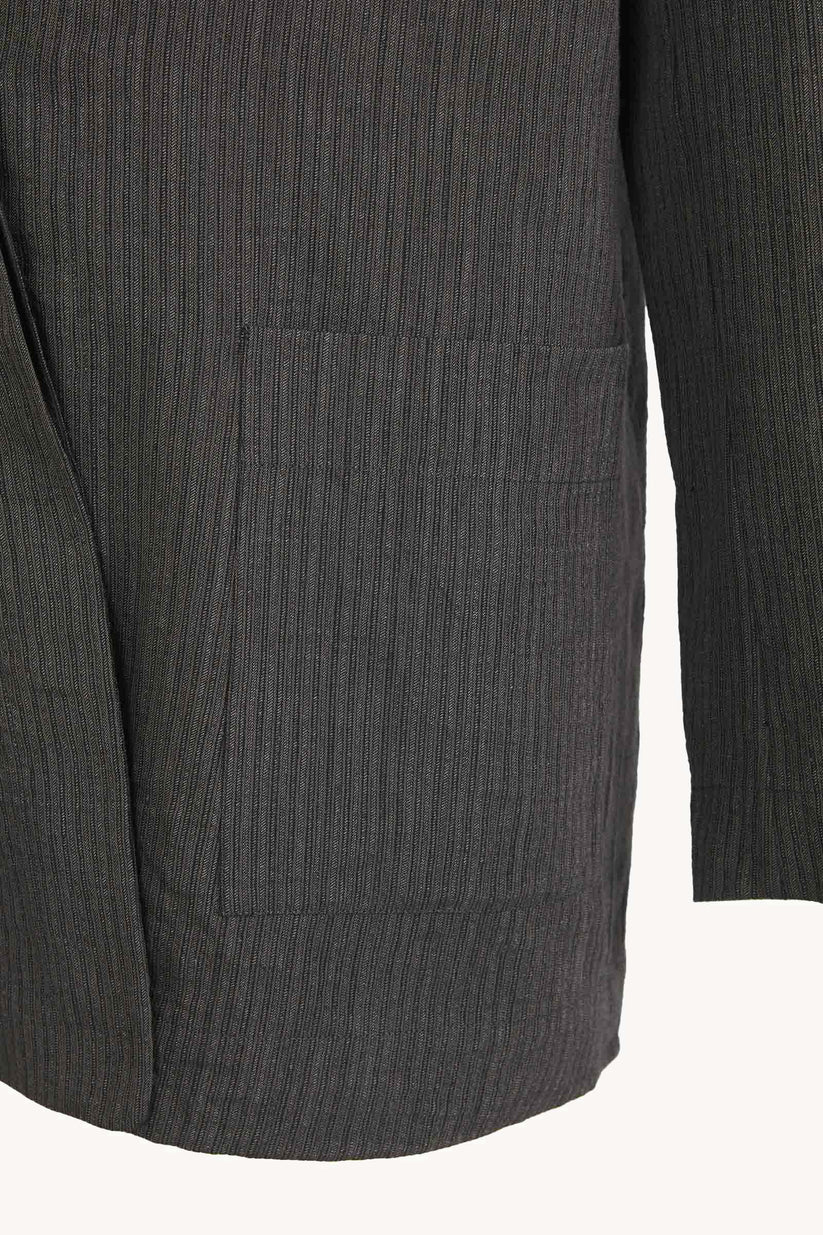Oversized jacket made from a jacquard fabric that combines linen, viscose, and cotton. The Trapani jacket features a lapel collar, front pockets, and a two-button front closure.