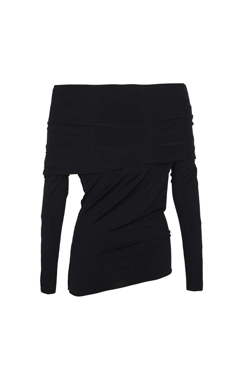 Off-the-shoulder long-sleeved top, made from stretch cupro. The Velora top has an asymmetrical hem.