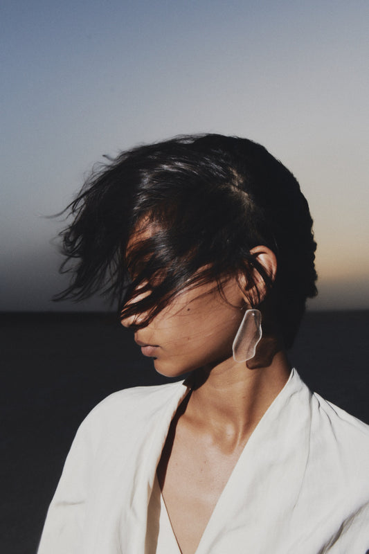 Camisa larga de seda natural en marfil. Esta camisa tiene el cuello redondo y manga tres cuartos.