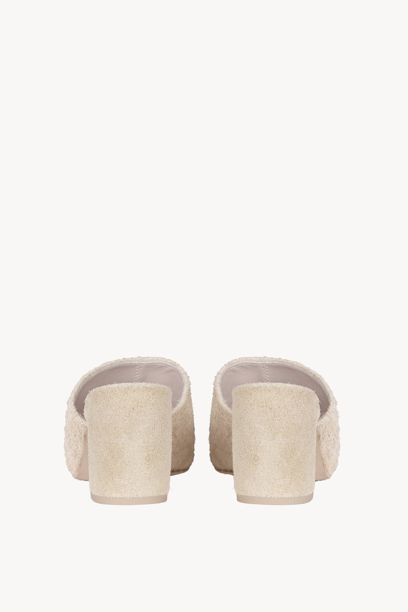 Alice, mule en ante cepillado con el característico tacón en forma de luna de Cortana. Un modelo versátil y cómodo, con punta cuadrada y bordes redondeados y un tacón medio ancho que permite su uso durante todo el día. Forro de cuero tono sobre tono sin detalles de costura. Hecho a mano, con la plantilla unida al tacón en una sola pieza. La suela de cuero está pintada a mano para que coincida con el cuero. Cualquier pequeña imperfección confirma el trabajo artesanal y da un valor único a cada par.