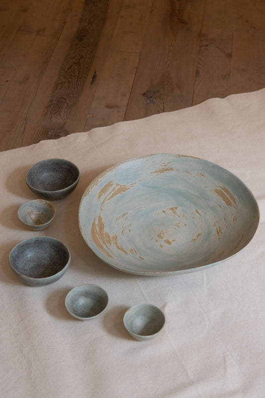 Bol mediano de cerámica, un diseño de Cortana realizado artesanalmente en Mallorca. Perfecto para aperitivos o desayunos, fabricado a mano con gres refractario y chamota fina, esmaltado en verde.