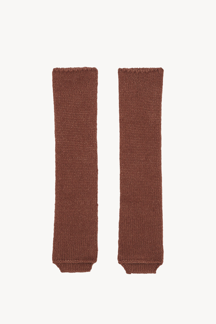 Calentadores realizados en punto con un hilo que combina baby alpaca, lana y seda.