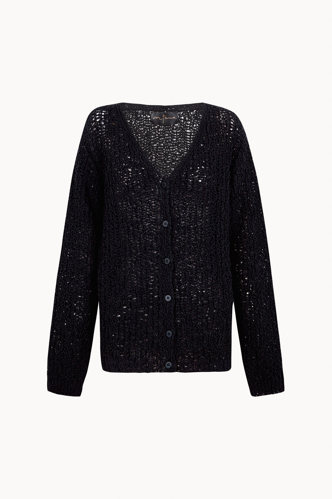 Cárdigan de punto oversize, con escote en pico, manga larga y botones en el delantero.