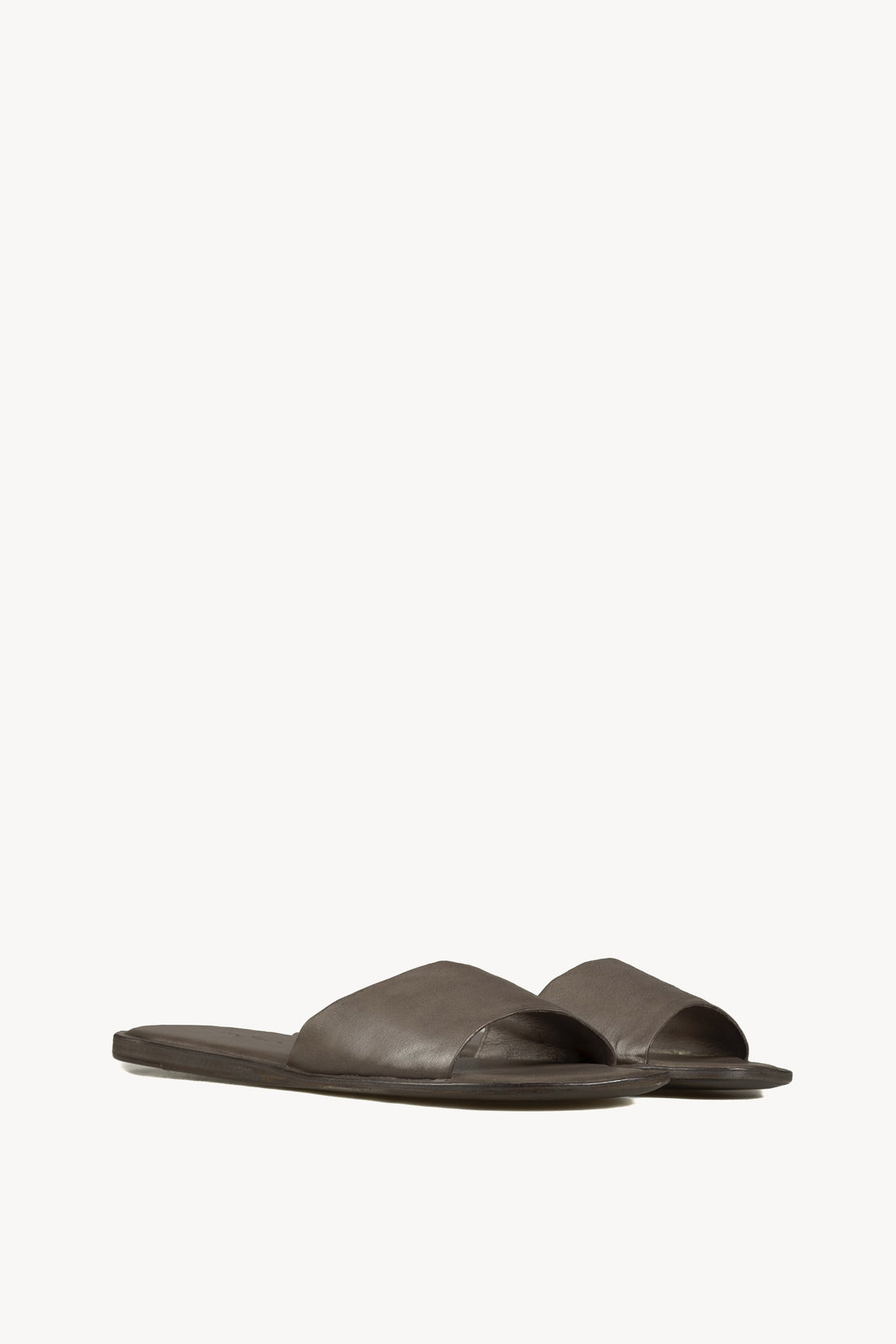 Heidi, sandalia plana con plantilla acolchada y la suela de cuero pintada al tono de la piel. Un modelo cómodo, versátil y muy atractiva por la tira asimétrica que cubre el pie y fabricada en Mallorca con pieles de curtición vegeta.