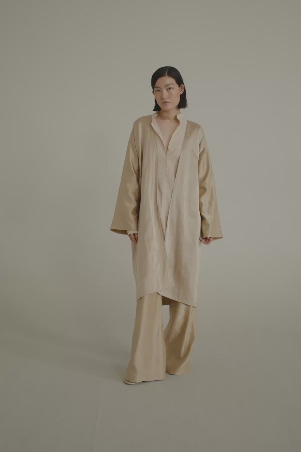 Pantalón de talle alto con la parte superior ajustada y con pierna con una ligera campana, realizado en un tejido satinado que combina lino, algodón y viscosa. El pantalón Inga tiene cremallera invisible en el lateral.