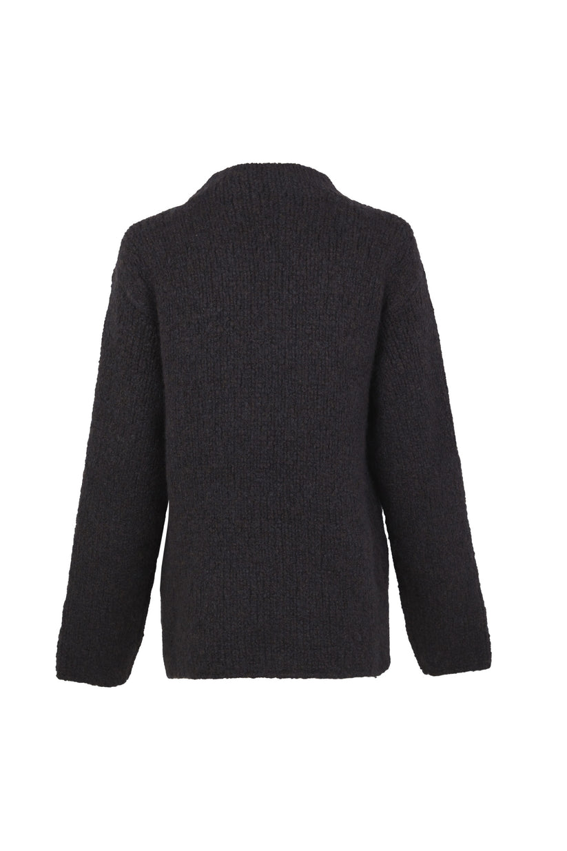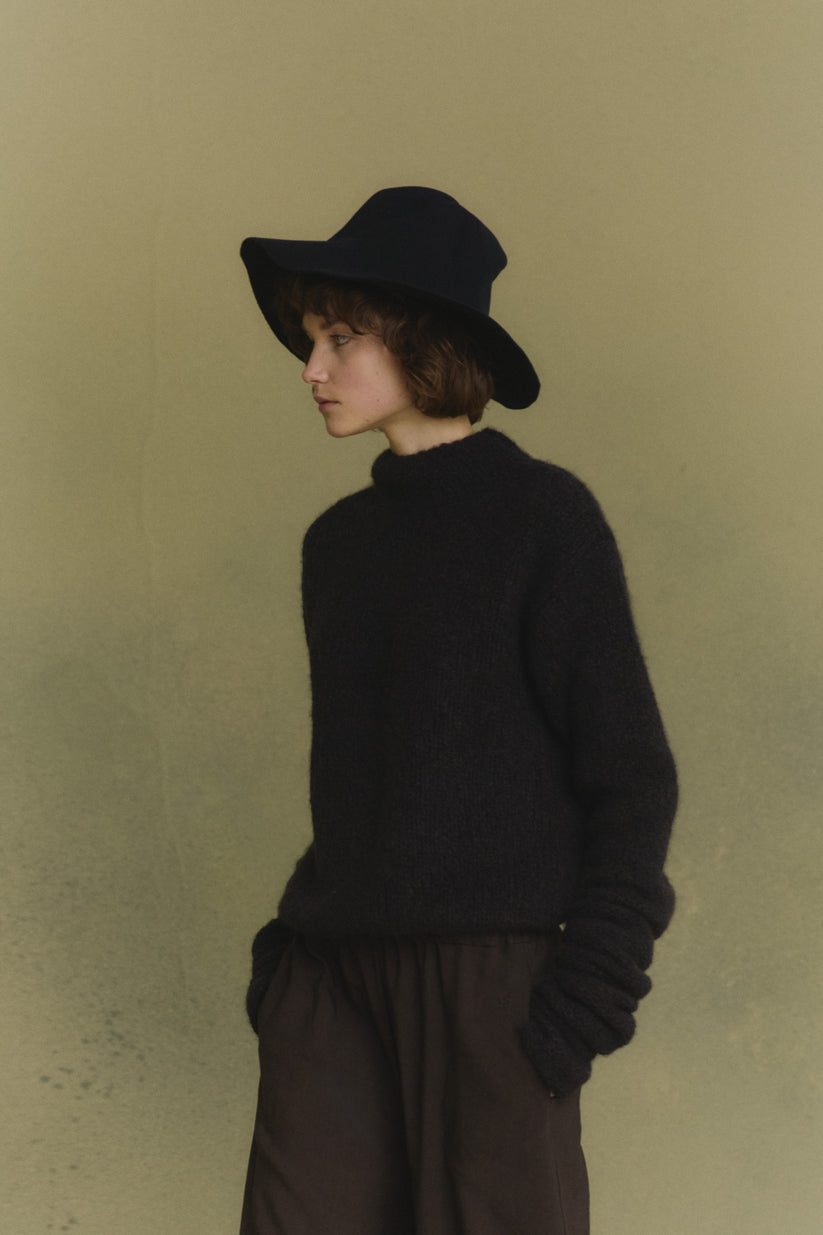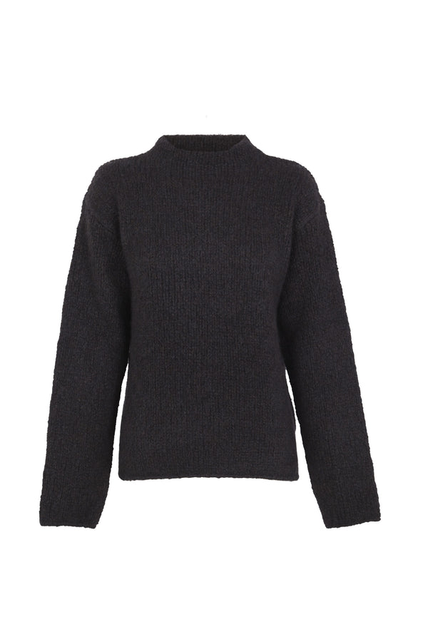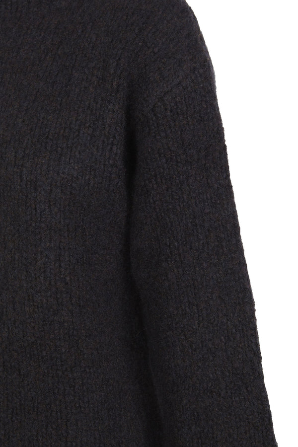 Jersey con cuello perkins bajo y manga larga realizado en hilo de cachemir y seda.