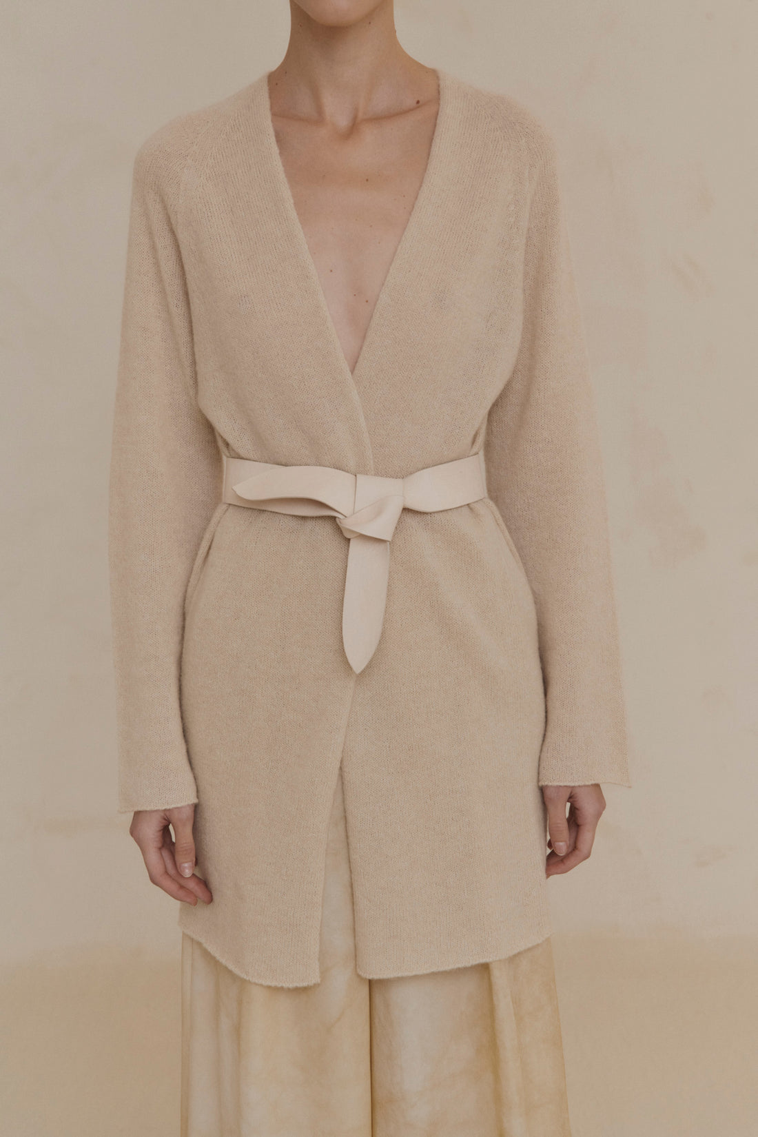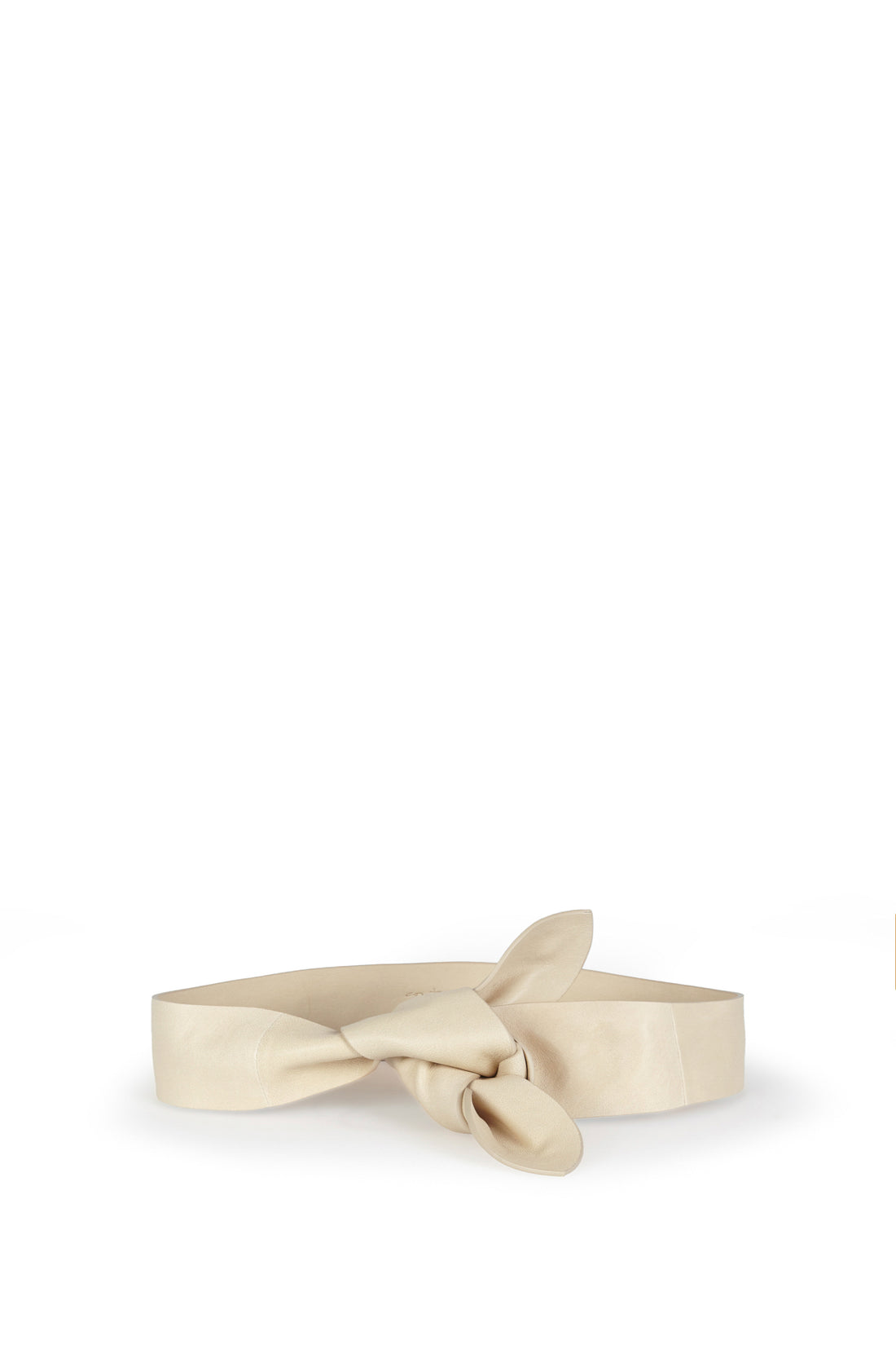 Cinturón ancho de cuero napa con curtido vegetal. El cinturón Jin tiene acabado en forma de hoja y se ajusta mediante un nudo, permitiendo un ajuste más cómodo y personalizable.