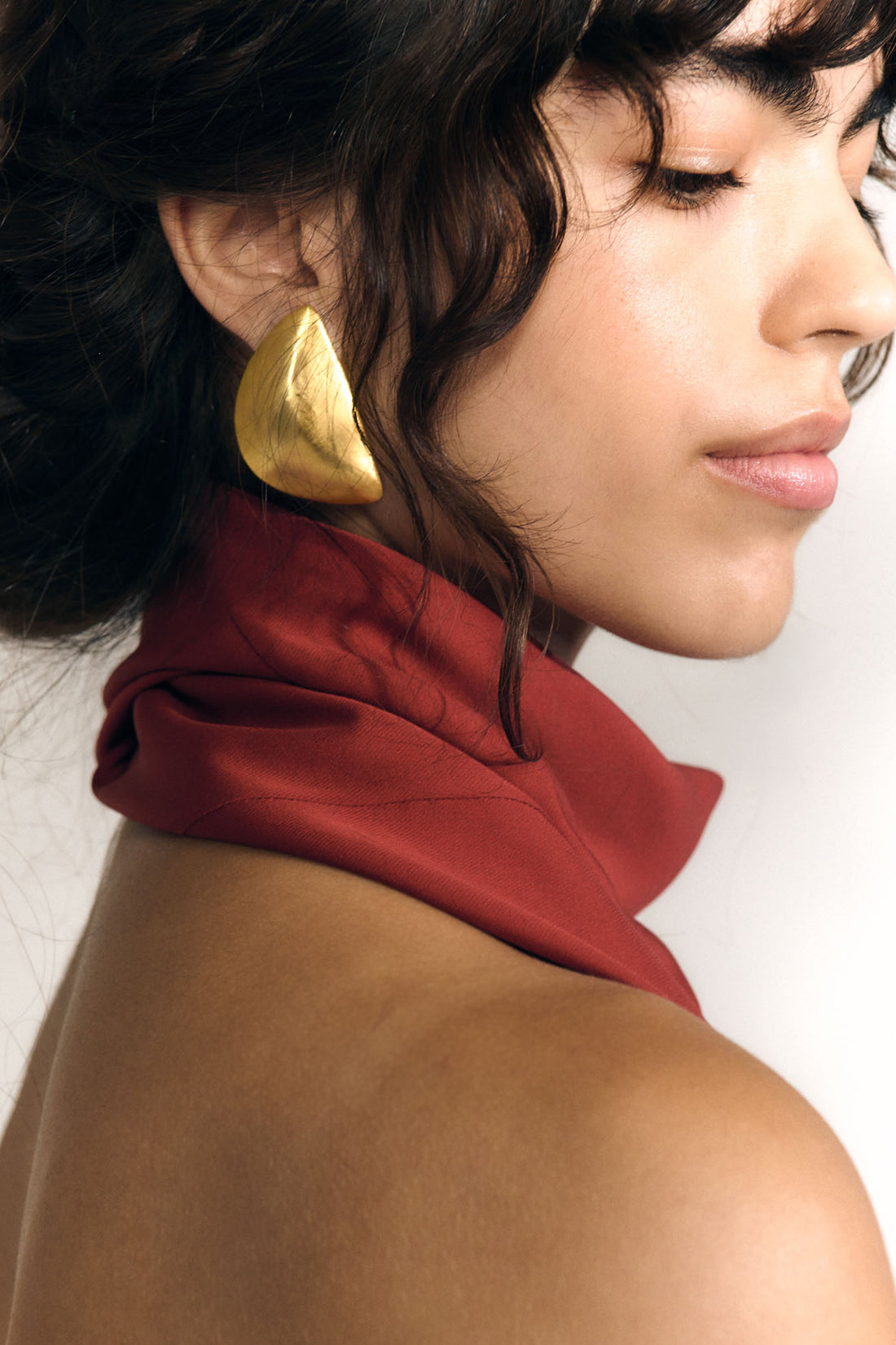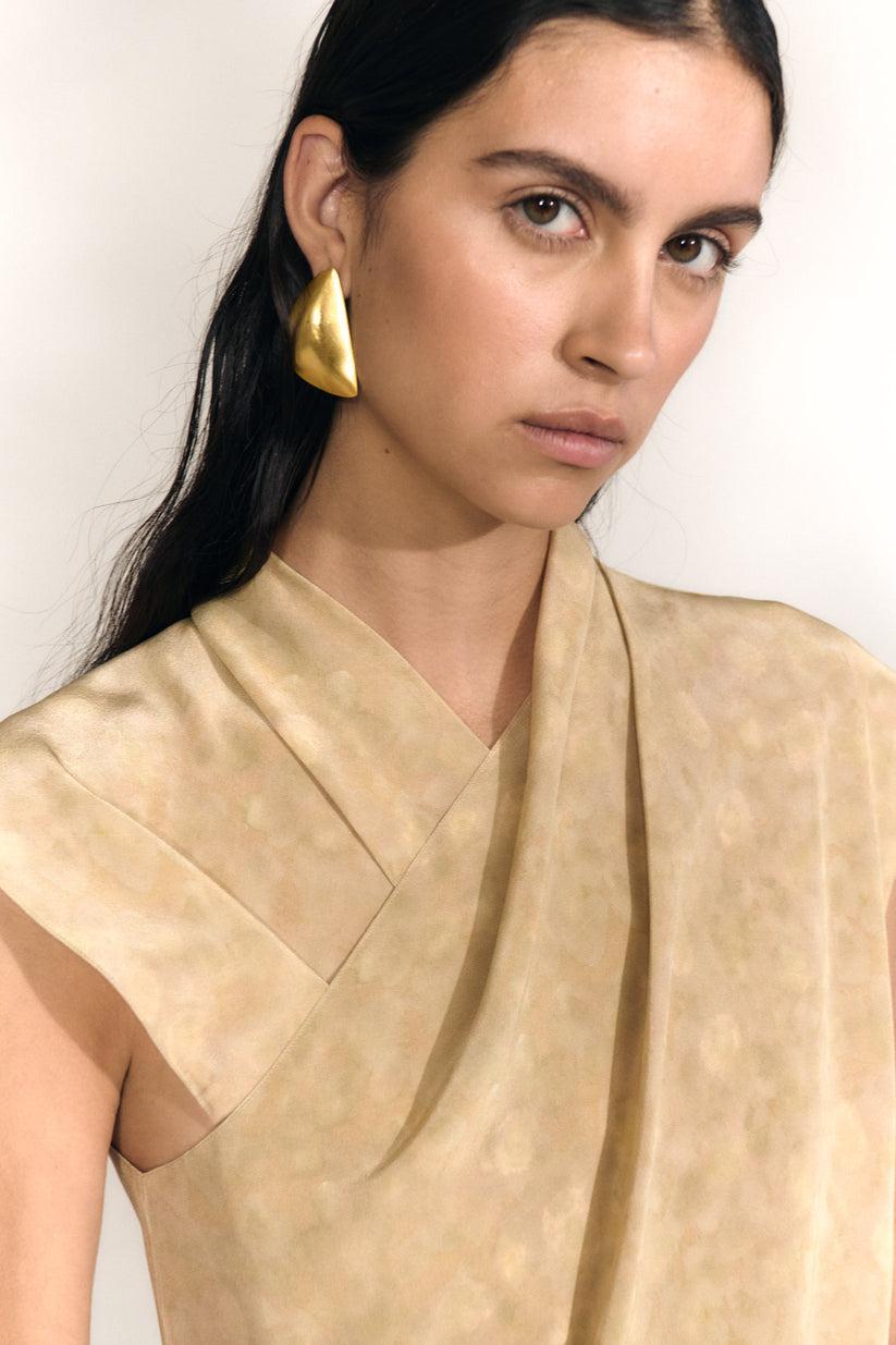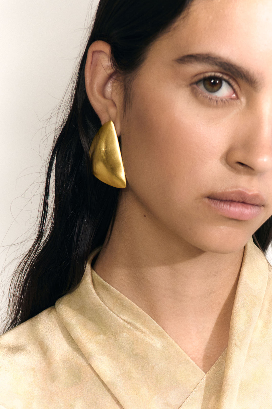 Pendiente triangular con cierre a presión. Parte de la colección Noapte realizado a mano en plata de ley 925 y bañado en oro de 3 micras.
