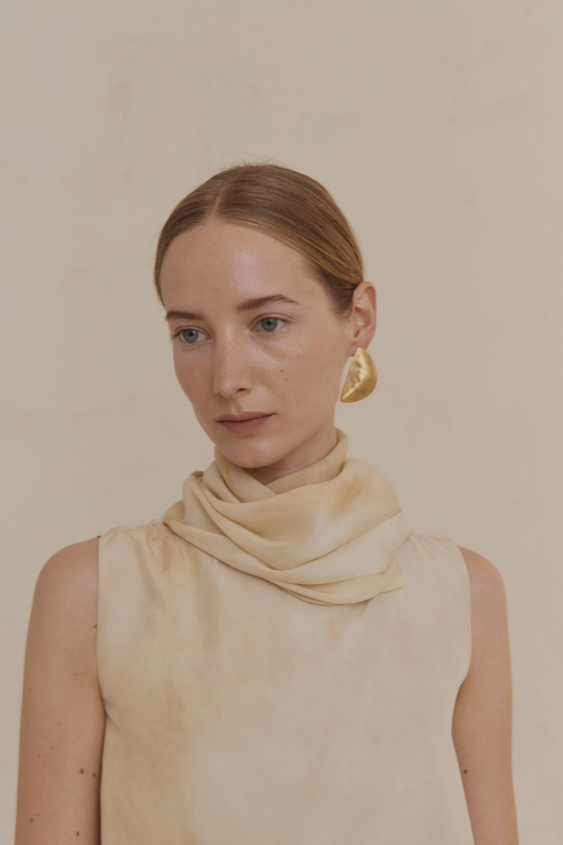 Pendiente triangular con cierre a presión. Parte de la colección Noapte realizado a mano en plata de ley 925 y bañado en oro de 3 micras.