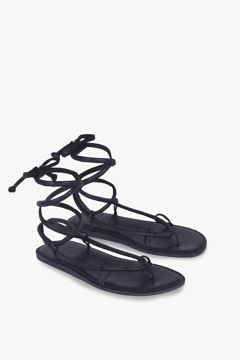 Lou, sandalias planas de cordón fino forrados en piel y acolchados. Este modelo se anuda al pie envolviendo el tobillo, el largo del cordón permite jugar y encontrar diversas maneras de de llevarlas. Este versátil y cómoda calzado tiene plantilla acolchada y la suela de cuero apomazado natural o pintado al tono de la piel. Fabricadas artesanalmente en Mallorca, con materia prima procedente y hecha al 100% en Europa.