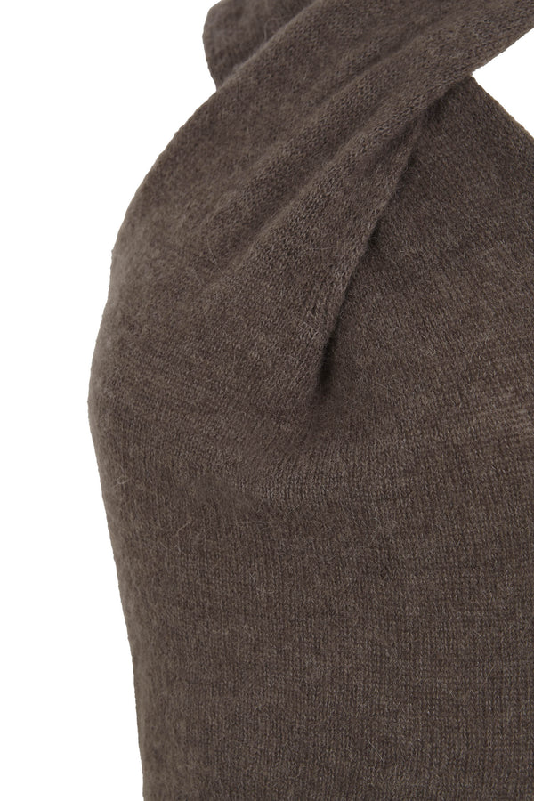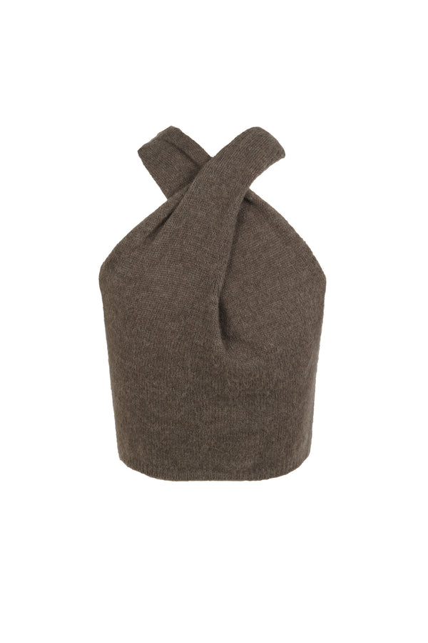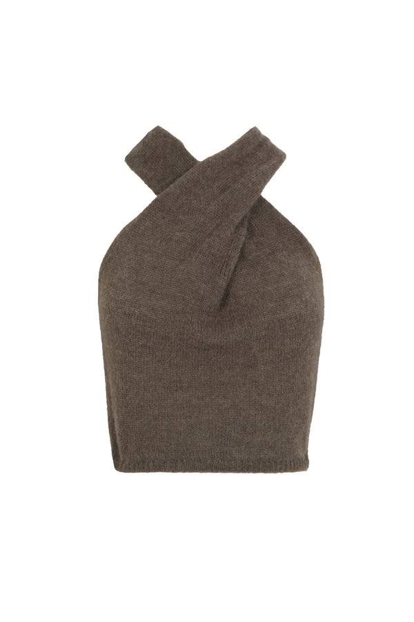 Top de punto confeccionado con una mezcla de baby alpaca, cachemira y seda. El top Lux presenta un escote halter cruzado.