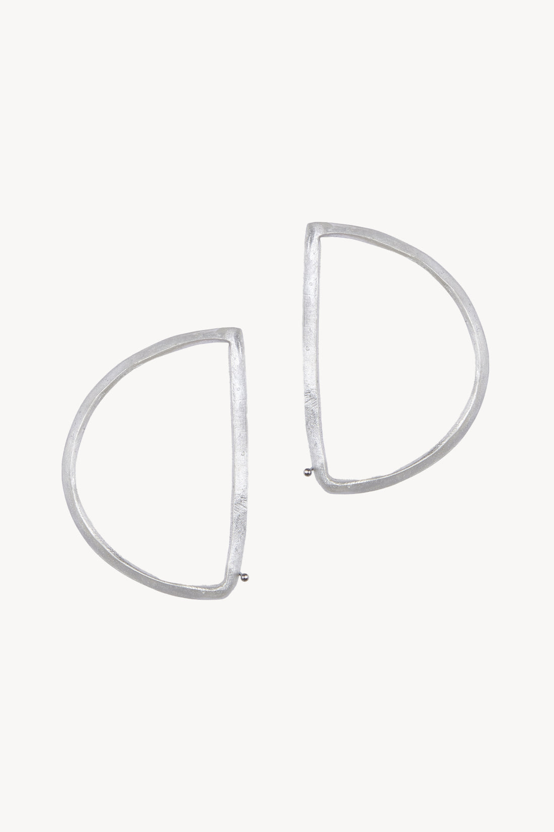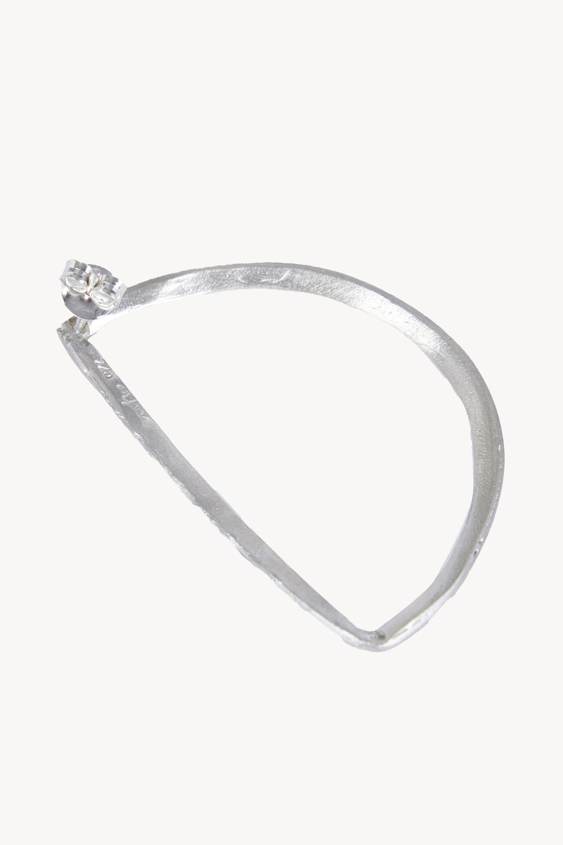 Pendiente con forma de semi circunferencia con cierre a presión. Parte de la colección Noapte realizado a mano en plata de ley 925 y un acabado matizado de alta calidad.