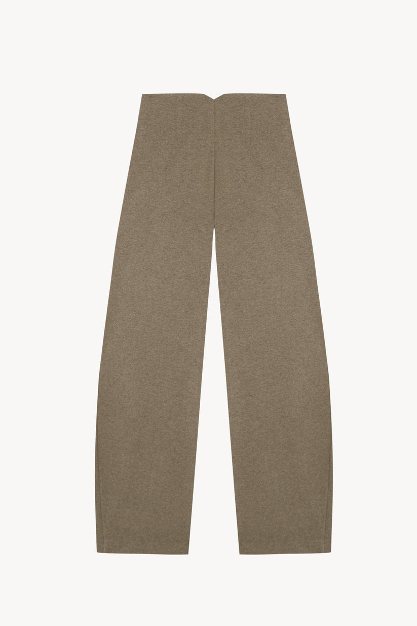 Pantalón de corte masculino y talle alto, con pinzas y bolsillos laterales confeccionada en un tejido melange que combina lana y cachemir procedentes de Italia, con tacto cálido y estructura suave.