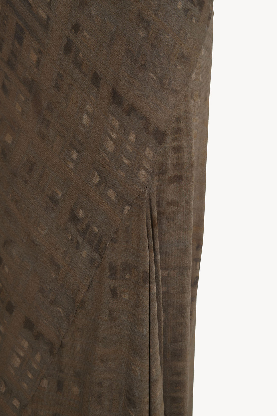 Vestido largo cortado al bies y con cortes asimétricos. El vestido Mire está realizado con dos capas de georgette de seda stretch estampada. Este estampado exclusivo parte de una acuarela realizada por la directora creativa de Cortana.