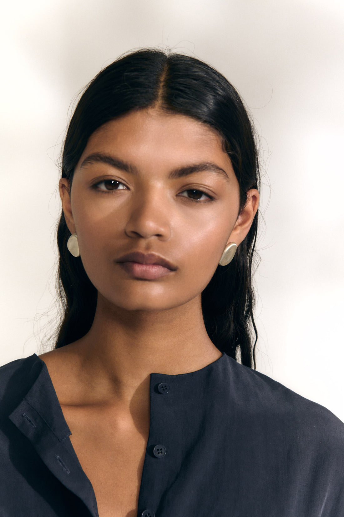 Pendiente ovalado con cierre a presión. Parte de la colección Noapte realizado a mano en plata de ley 925 y un acabado matizado de alta calidad.