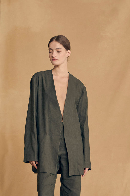 Los tejidos de lino en las colecciones de Cortana se realizan mediante métodos tradicionales, lo cual puede generar variaciones mínimas en el grosor del hilo. Estos detalles sutiles añaden un carácter único a cada prenda y son una señal distintiva de los tejidos naturales, sin comprometer la calidad de la prenda.Los gastos de envío varían según el país de destino. Se calculan automáticamente y se ven reflejados en la pasarela de pago.