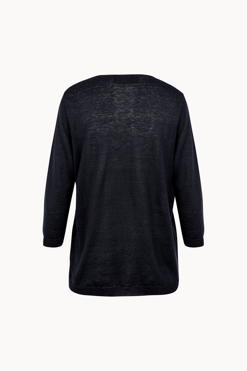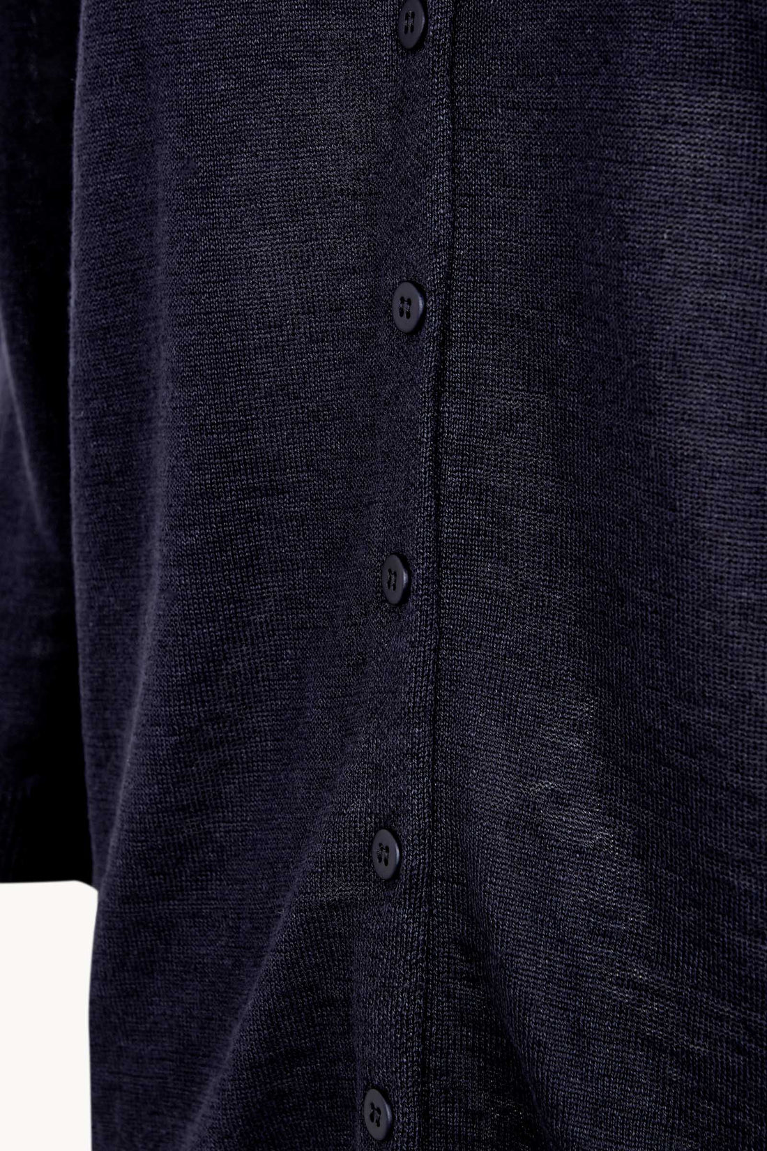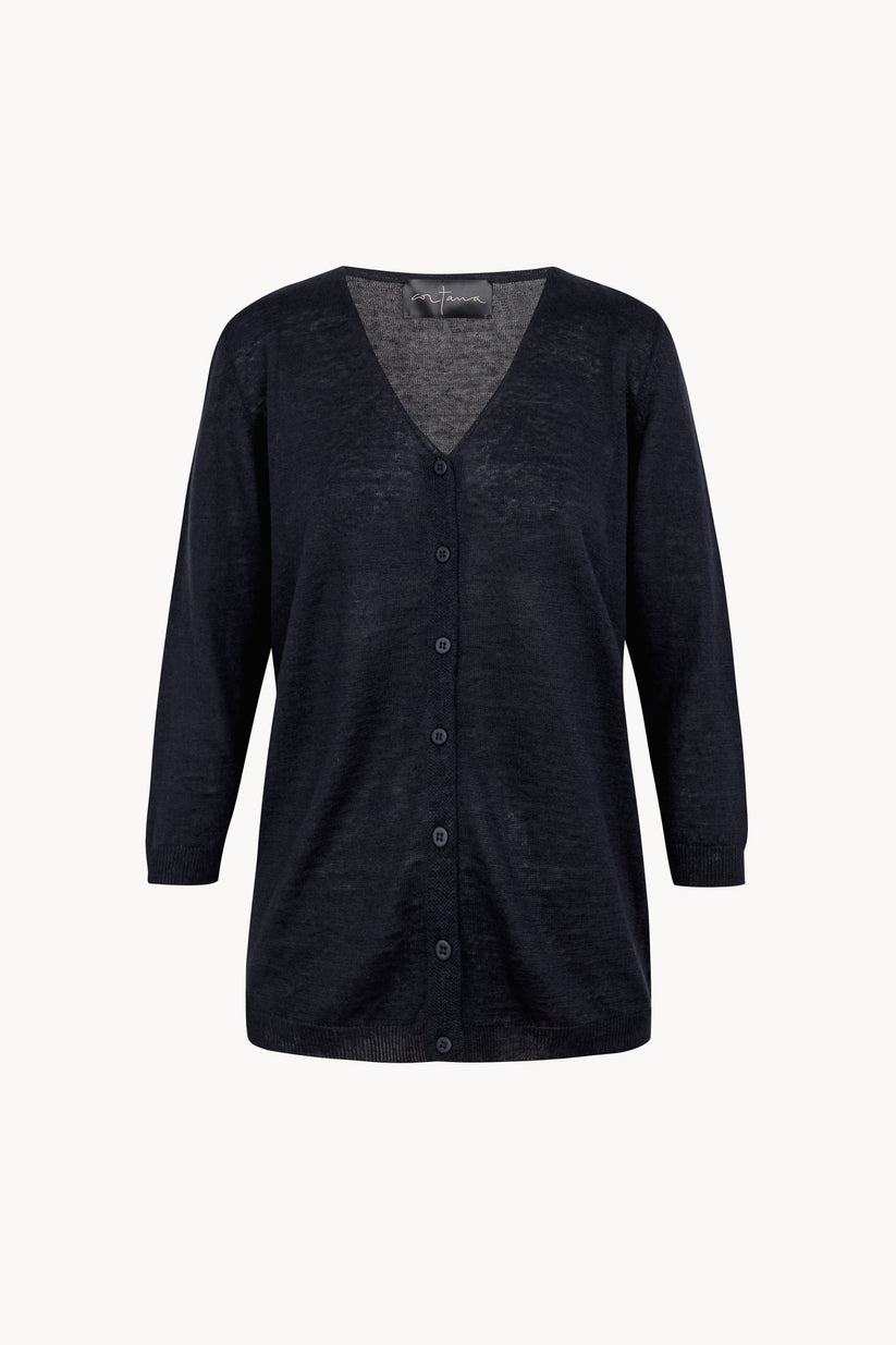 Cárdigan de punto con cuello pico y abotonadura central. El cárdigan Noa tiene manga japonesa, con acabados en rib en los puños y el bajo que aporta estructura y definición a la prenda.