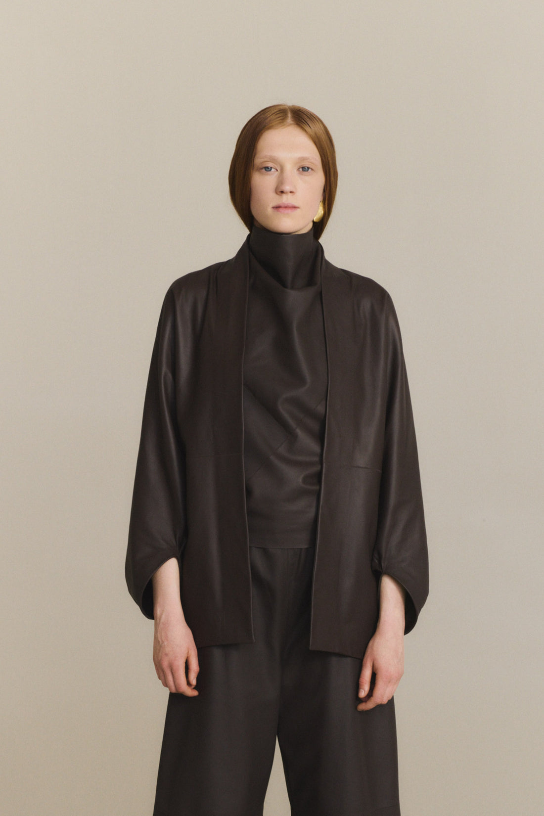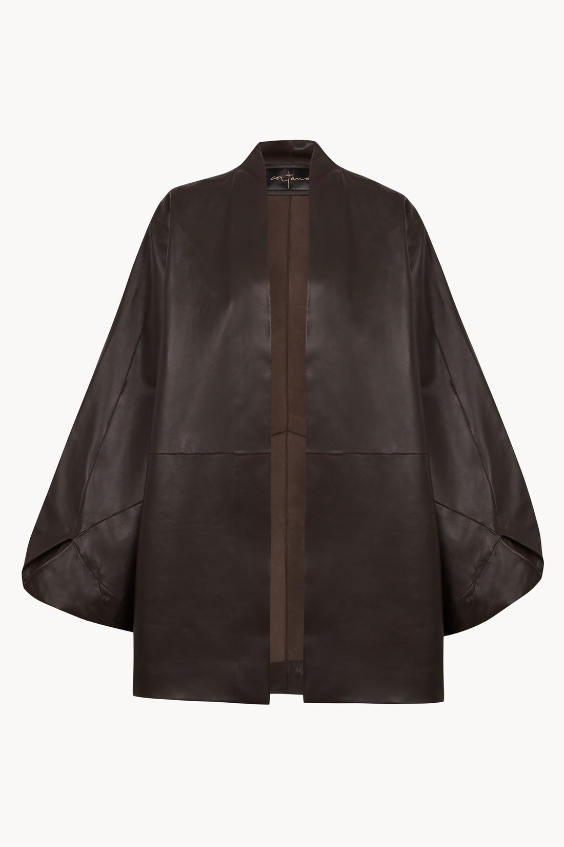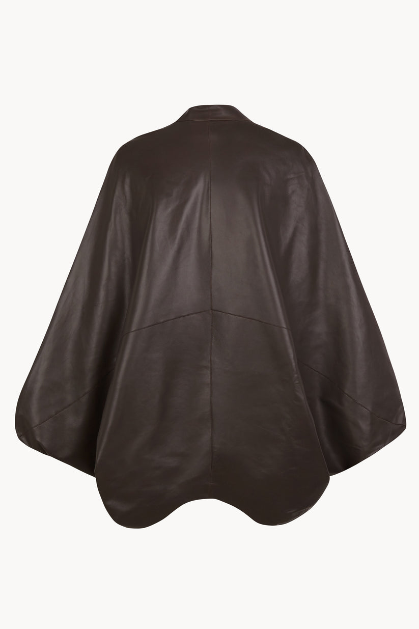 Opalo, chaqueta kimono de piel marron oscuro