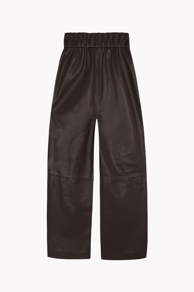 Pantalón unisex de corte amplio realizado en piel de cordero, con cintura elástica y pierna ligeramente curvada. Cada pieza se confecciona en España, en talleres especializados, con un enfoque artesanal y una cuidada selección de materiales.