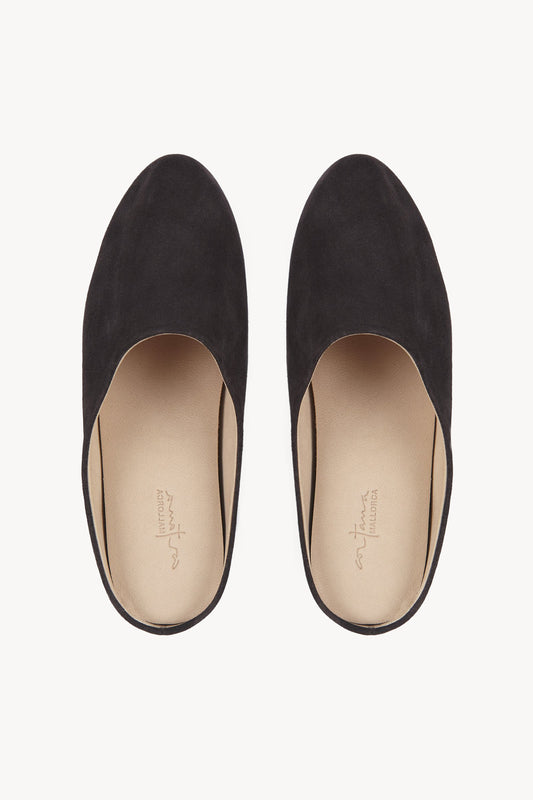 Pantalón de terciopelo negro con cinturilla de punto y pernera ligeramente curva.